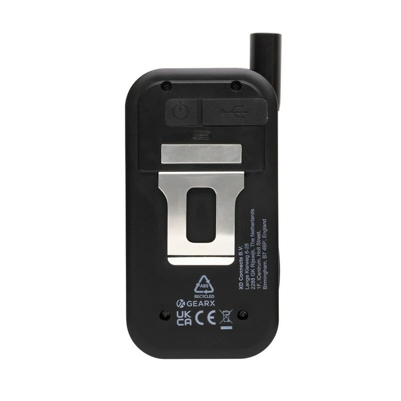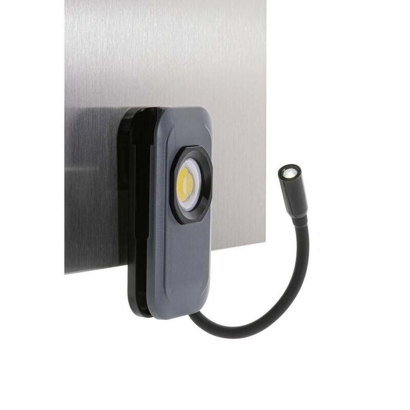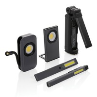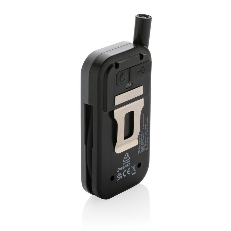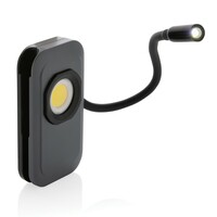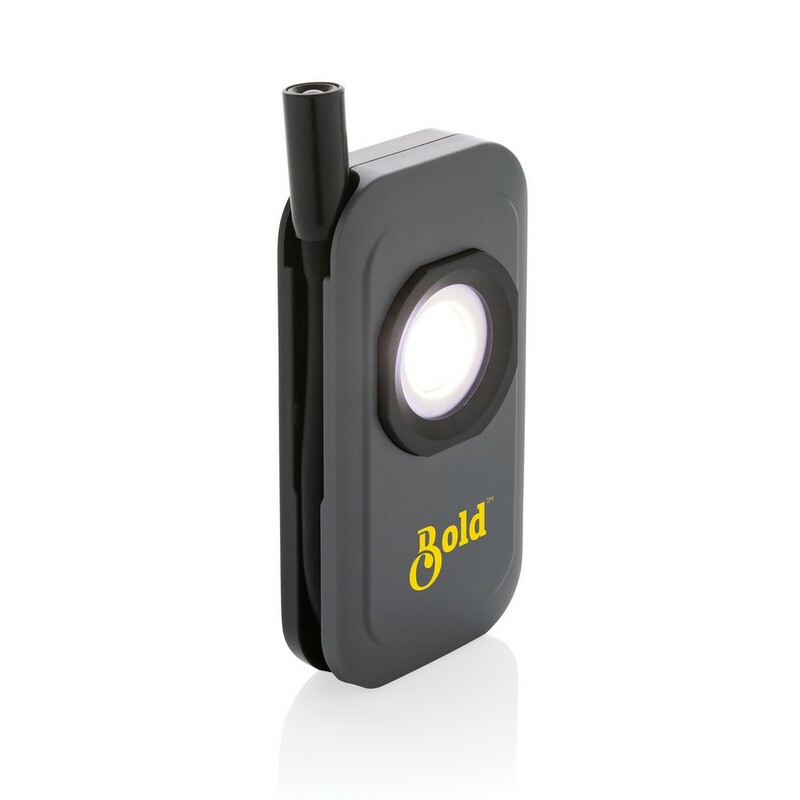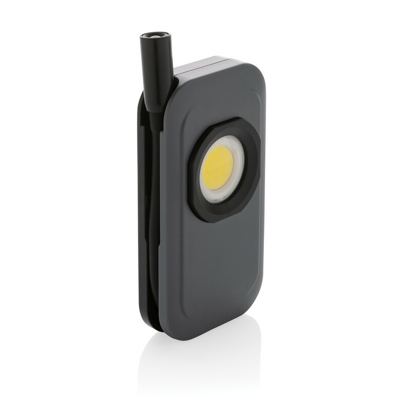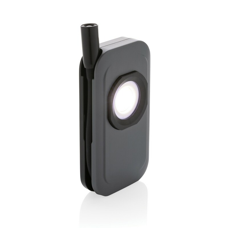 Latarka COB LED, lampka warsztatowa, magnes z tyłu obudowy, jasność światła COB do 260 lumenów, LED do 80 lumenów, wykonana z materiałów z recyklingu, całkowita zawartość materiałów z recyklingu obliczona na podstawie wagi całkowitej przedmiotu: 36%, wbudowana bateria 1000 mAh, 3 tryby świecenia, wejście USB typu C, czas świecenia na jednym ładowaniu do 3 godzin, ślad węglowy produktu: 0 kg CO2