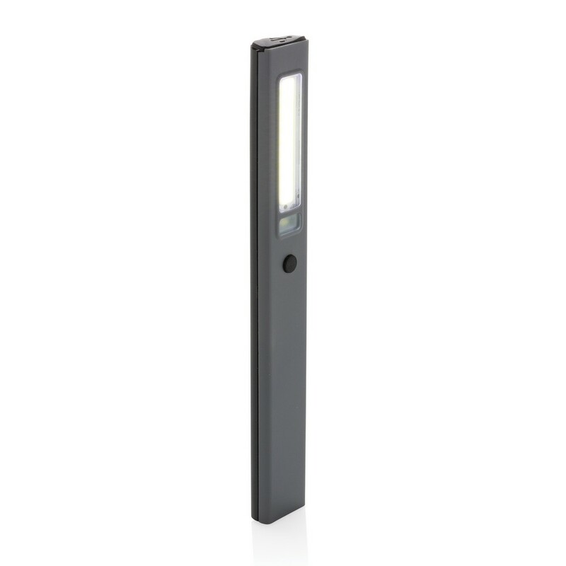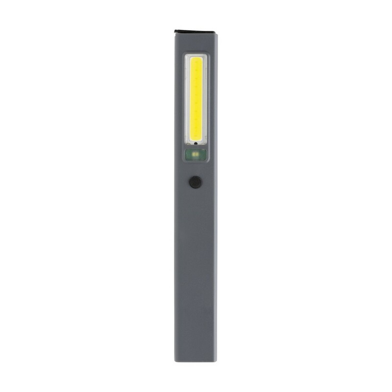 Latarka COB LED, lampka inspekcyjna, magnes z tyłu obudowy, jasność światła COB do 220 lumenów, LED do 80 lumenów, wykonana z materiałów z recyklingu, całkowita zawartość materiałów z recyklingu obliczona na podstawie wagi całkowitej przedmiotu: 36%, wbudowana bateria 520 mAh, 3 tryby świecenia, wejście USB typu C, czas świecenia na jednym ładowaniu do 3 godzin, ślad węglowy produktu: 0 kg CO2