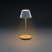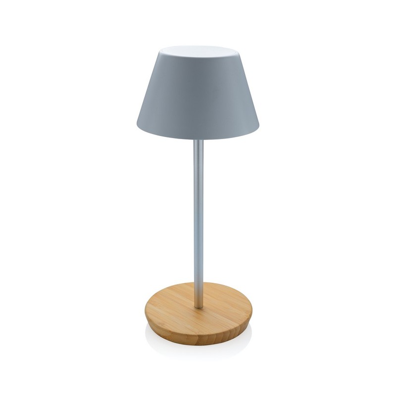 Lampka na biurko, 2 tryby świecenia, przycisk dotykowy w podstawie, wbudowany akumulator 1800 mAh pozwala na świecenie do 18 godzin na jednym ładowaniu, ponowne ładowanie w 2 godziny, wejście USB typu C do ładowania, wykonana z ABS z recyklingu z certyfikatem RCS i bambusa z certyfikatem FSC®, całkowita zawartość materiałów z recyklingu obliczona w oparciu o wagę całkowitą przedmiotu: 40%, w pudełku z papieru kraftowego z certyfikatem FSC® mix