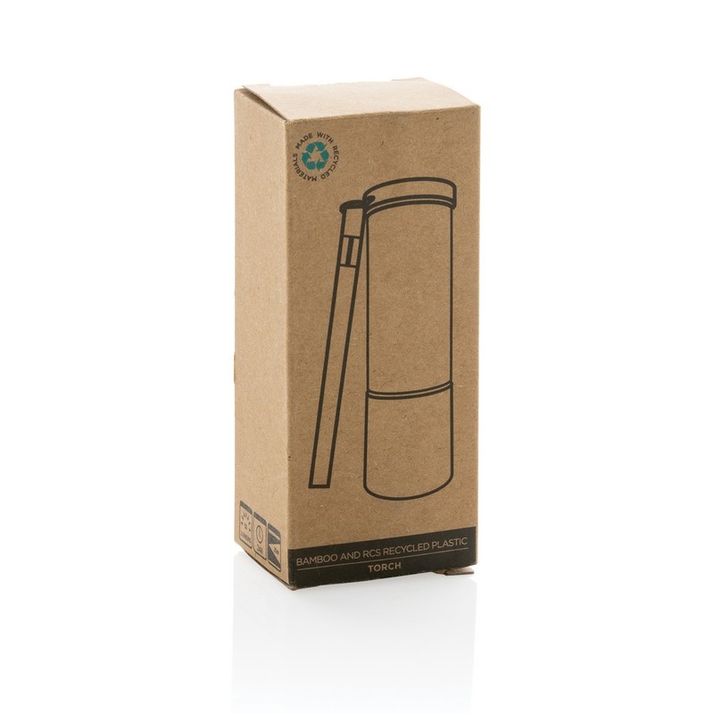 Latarka, jasność 30 lm, wykonana z ABS z recyklingu z certyfikatem RCS oraz bambusa z certyfikatem FSC®, całkowita zawartość materiałów z recyklingu obliczona na podstawie wagi całkowitej przedmiotu: 23%, w pudełku z papieru kraftowego z certyfikatem FSC® mix, ślad węglowy produktu: 0,42 kg CO2