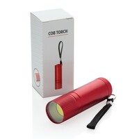 Latarka kieszonkowa COB, bardzo jasne światło, jaśniejsze od standardowych latarek LED, zużywa mniej energii, dzięki czemu może być używana do 30% dłużej na tej samej baterii, obudowa z wytrzymałego aluminium, pasek na rękę, 3 baterie AAA w komplecie, ślad węglowy produktu: 0,58 kg CO2