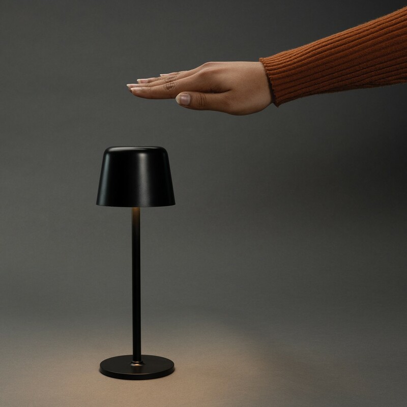 Lampka na biurko, lampka stołowa, wykonana z ABS i metalu z recyklingu, 3 tryby świecenia, wbudowany akumulator o pojemności 1200 mAh umożliwia świecenie do 8 godzin na jednym ładowaniu, ponowne ładowanie w 3 godziny, ładowana przez USB C, kabel 80 cm z TPE z recyklingu w komplecie, w pudełku z certyfikatem FSC® mix