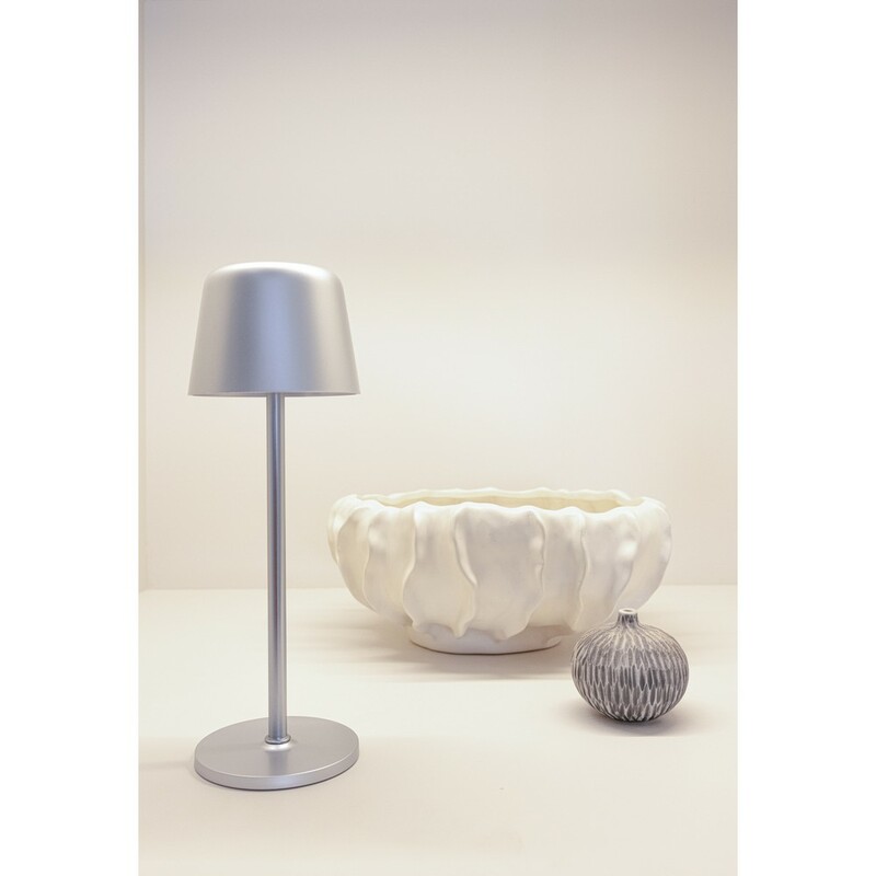 Lampka na biurko, lampka stołowa, wykonana z ABS i metalu z recyklingu, 3 tryby świecenia, wbudowany akumulator o pojemności 1200 mAh umożliwia świecenie do 8 godzin na jednym ładowaniu, ponowne ładowanie w 3 godziny, ładowana przez USB C, kabel 80 cm z TPE z recyklingu w komplecie, w pudełku z certyfikatem FSC® mix