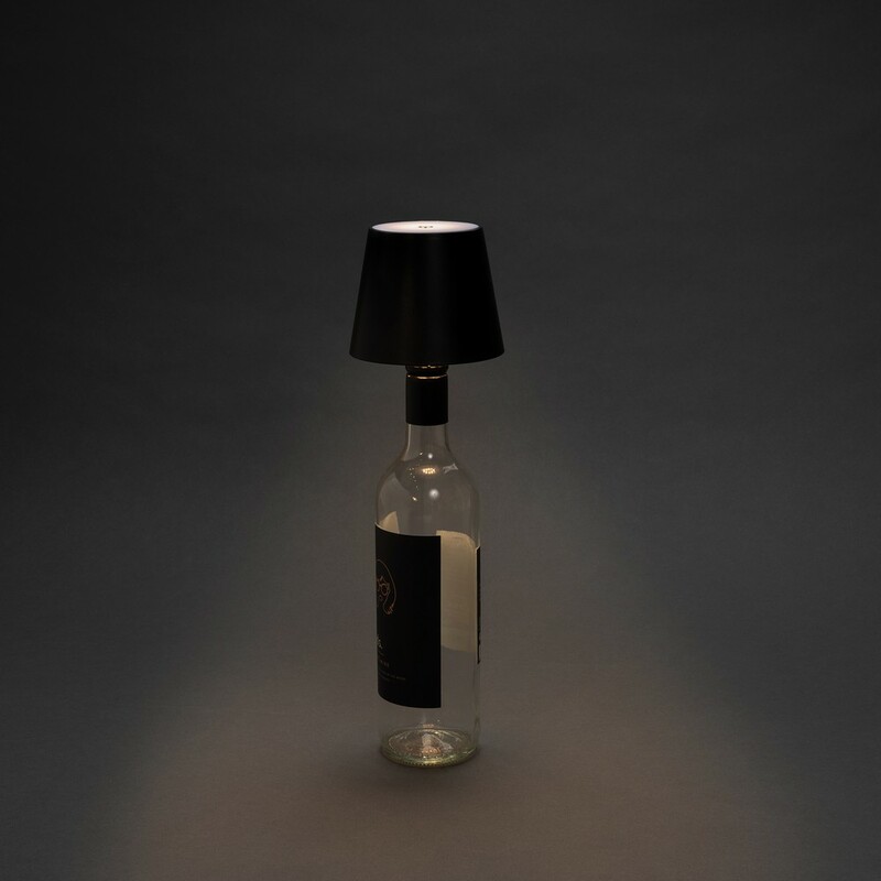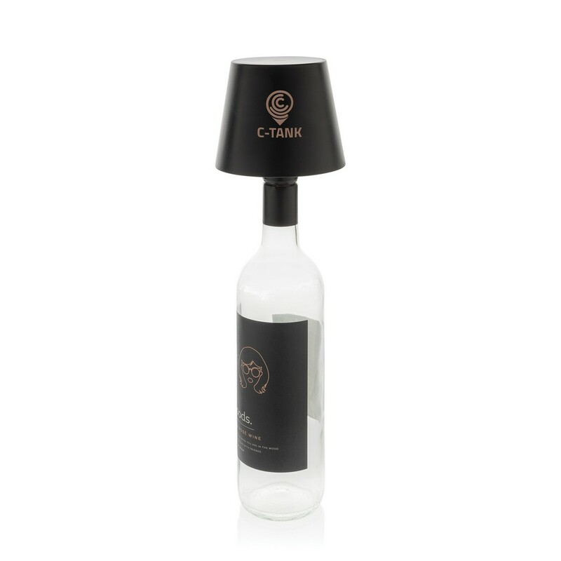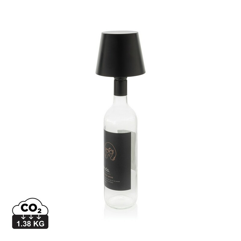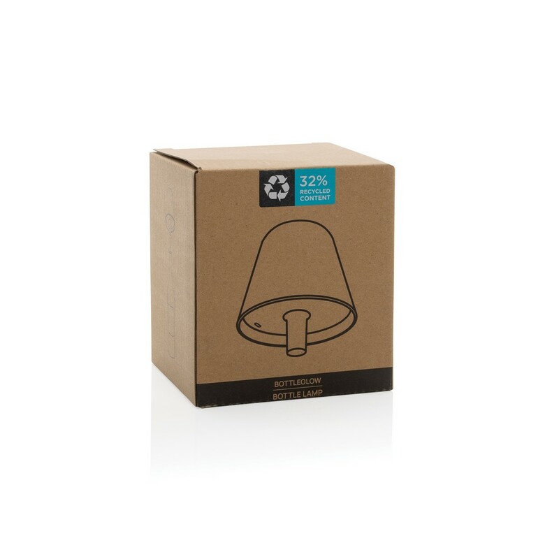 Lampka na butelkę, lampka na biurko, lampka stołowa, wykonana z ABS i metalu z recyklingu, 3 tryby świecenia, 31 diod LED, jasność 120 lumenów, wbudowany akumulator o pojemności 1200 mAh umożliwia świecenie do 4 godzin na jednym ładowaniu, ponowne ładowanie w 2 godziny, ładowana przez USB C, kabel 80 cm z TPE z recyklingu w komplecie, całkowita zawartość materiałów z recyklingu obliczona w oparciu o wagę całkowitą przedmiotu: 32%, w pudełku z certyfikatem FSC® mix