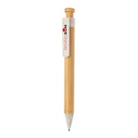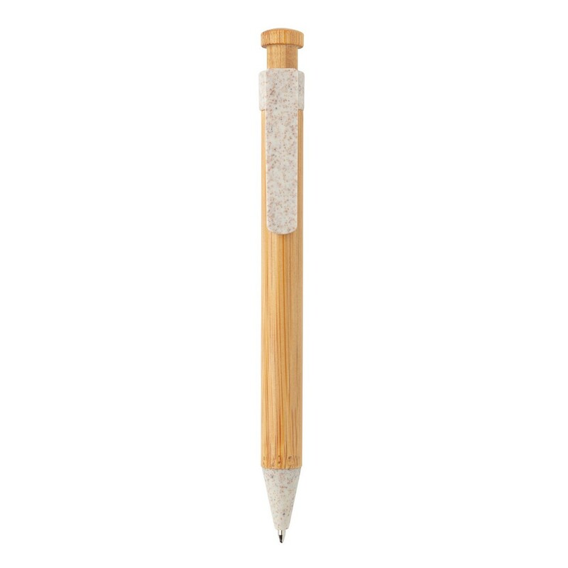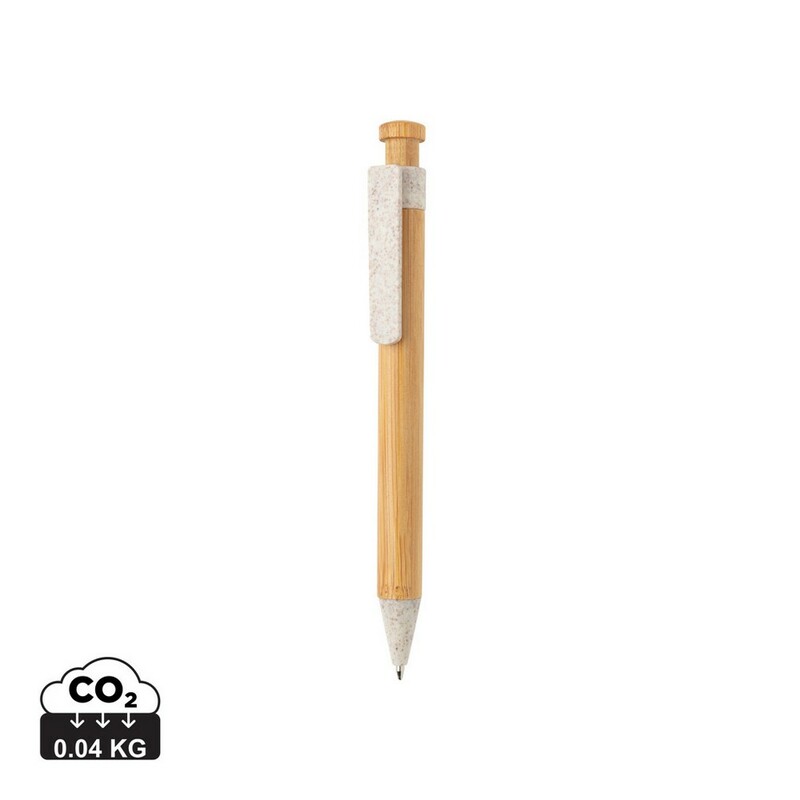 Długopis, bambusowy trzon, klip wykonany z mieszanki 40% słomy pszenicznej i 60% ABS, ślad węglowy produktu: 0,04 kg CO2
