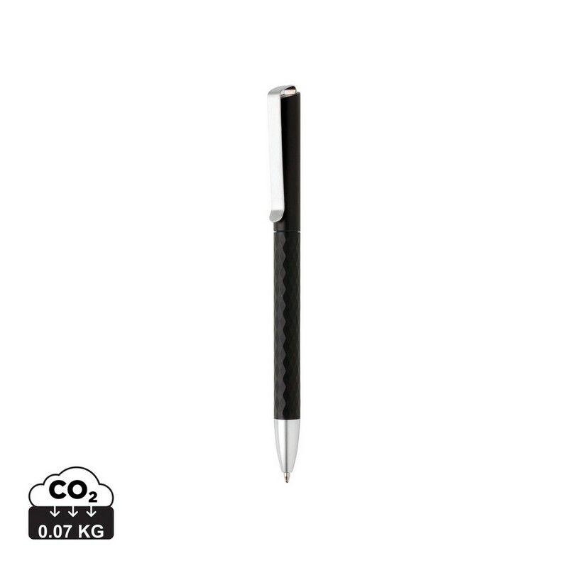 Długopis z metalowym klipem, diamentowy wzór na trzonie, niemiecki wkład Dokumental® w kolorze niebieskim w komplecie, długość pisania ok. 1200 m, kulka TC zapewnia wygodne pisanie, ślad węglowy produktu: 0,07 kg CO2