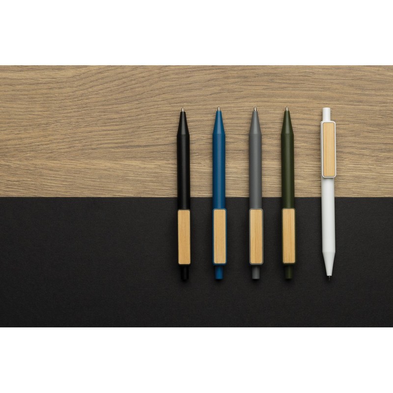 Długopis, wykonany z ABS z recyklingu z certyfikatem GRS, całkowita zawartość materiałów z recyklingu obliczona na podstawie wagi całkowitej przedmiotu: 80%, bambusowy klip, niemiecki wkład Dokumental® w kolorze niebieskim w komplecie, długość pisania ok. 1200 m, kulka TC zapewnia wygodne pisanie, ślad węglowy produktu: 0,02 kg CO2