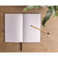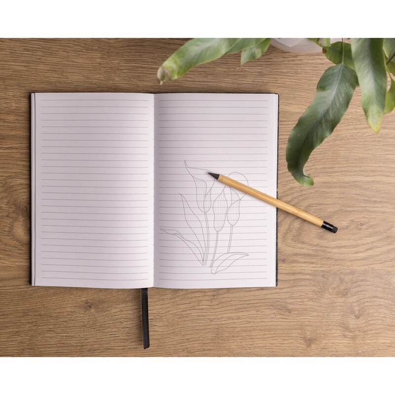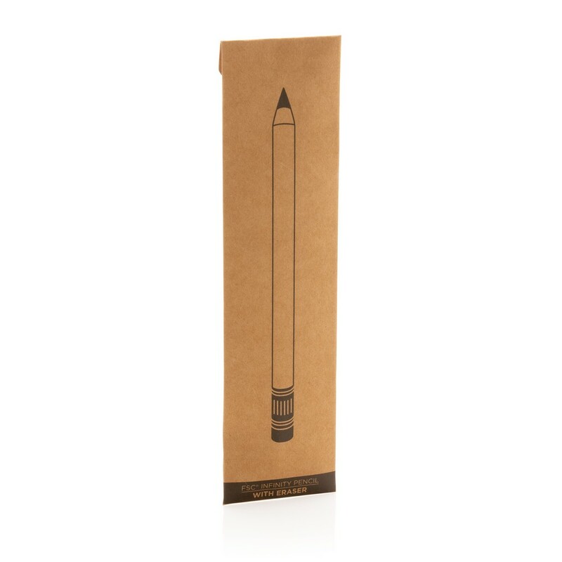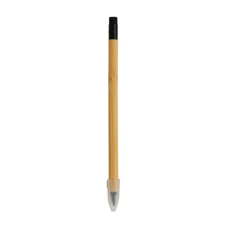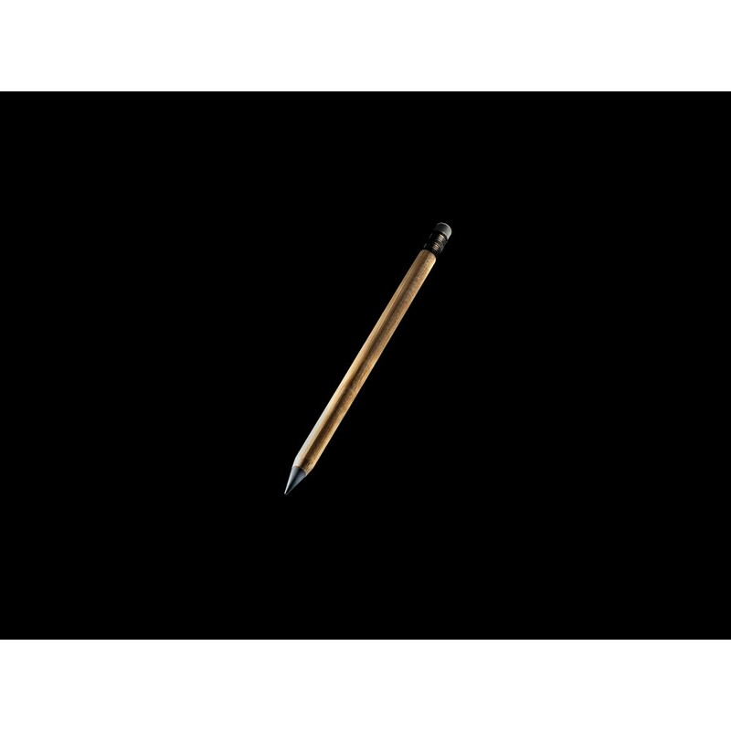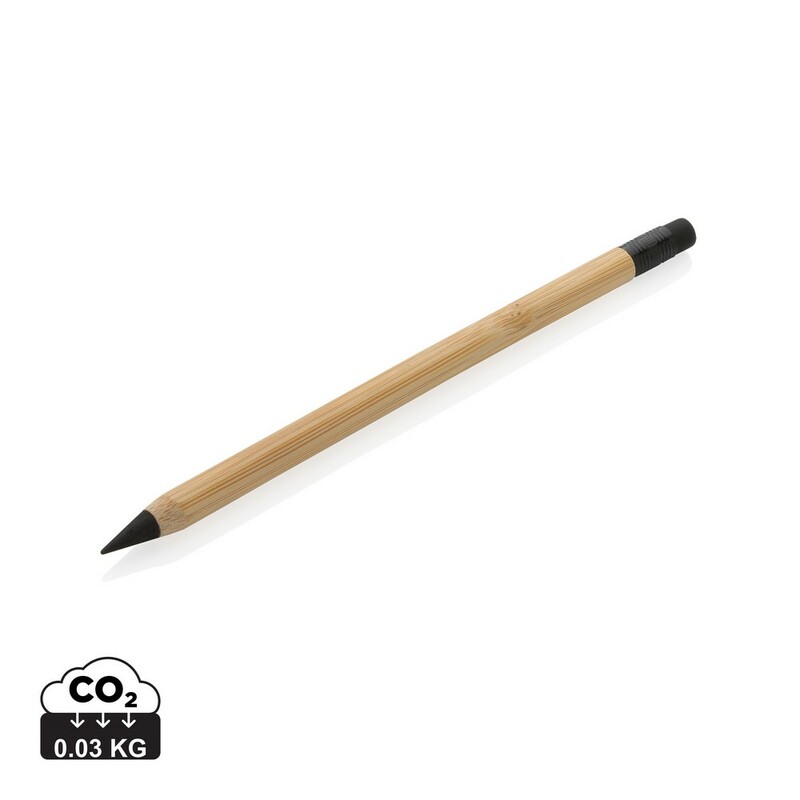 "Wieczny" ołówek z gumką, bambusowy trzon, dzięki wykorzystaniu specjalnej wolnościerającej się grafitowej końcówki długość pisania ołówka to około 20 000 metrów w porównaniu z tradycyjnym ołówkiem którego długość pisania to około 200 metrów, notatki można zmazać standardową gumką do mazania, ślad węglowy produktu: 0,03 kg CO2