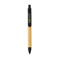 Długopis, wykonany z papieru z recyklingu, bambusowy wzór na trzonie, klip ze słomy pszenicznej, niemiecki wkład Dokumental® w kolorze niebieskim w komplecie, długość pisania ok. 1000 m, kulka TC zapewnia wygodne pisanie, ślad węglowy produktu: 0,03 kg CO2