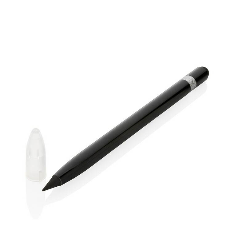 "Wieczny" ołówek z gumką, aluminiuowy trzon, dzięki wykorzystaniu specjalnej wolnościerającej się grafitowej końcówki długość pisania ołówka to około 20 000 metrów, notatki można zmazać standardową gumką do mazania, ślad węglowy produktu: 0,12 kg CO2