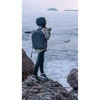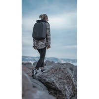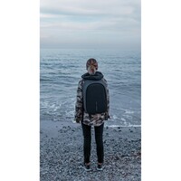 Plecak chroniący przed kieszonkowcami Bobby Hero Regular, wodoodporny i odporny na przecięcia materiał, wykonany z materiału RPET, ukryte zamki i kieszenie, wewnątrz miękkie przegrody na laptopa 15,6" i tablet do 12,9", zintegrowany port USB do ładowania telefonów (power-bank nie jest dołączony), odblaskowe paski zwiększające widoczność, pasek do zamocowania na walizce, wzór zastrzeżony®, ślad węglowy produktu: 6,68 kg CO2