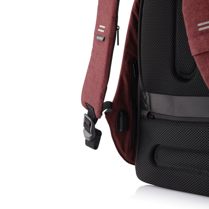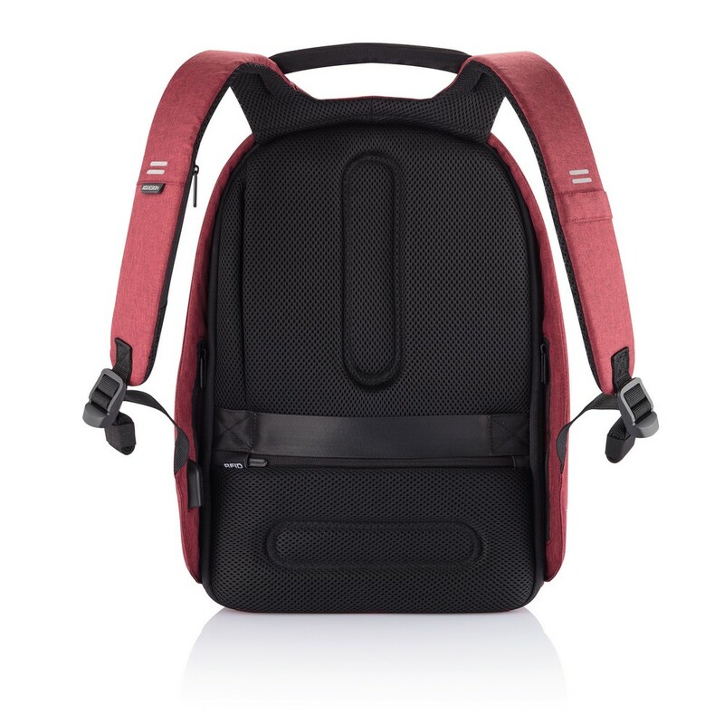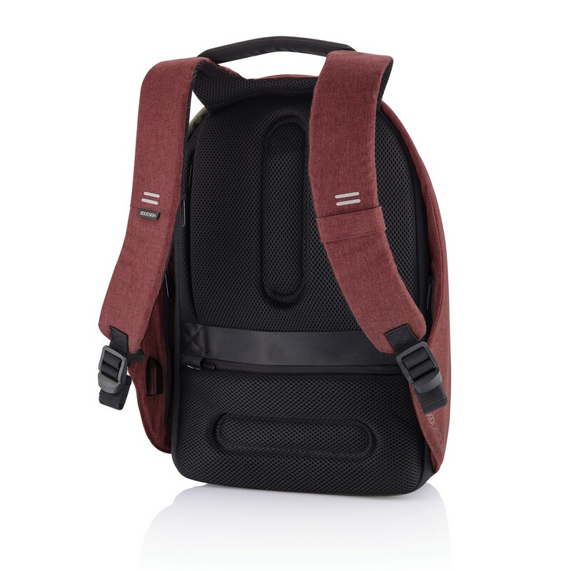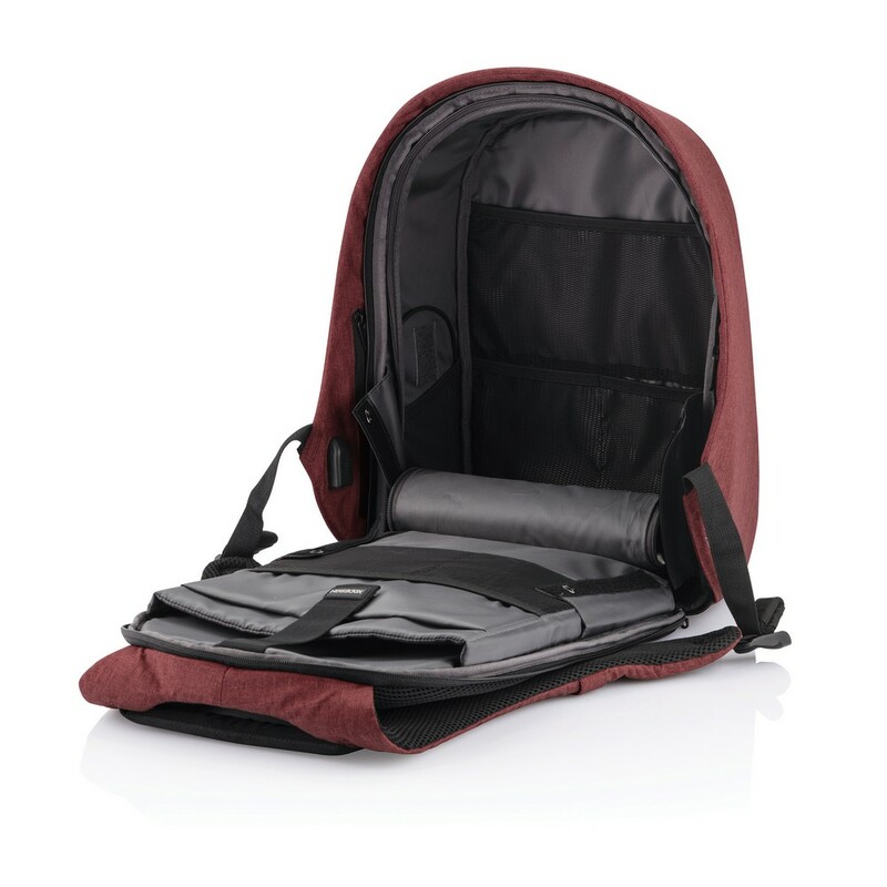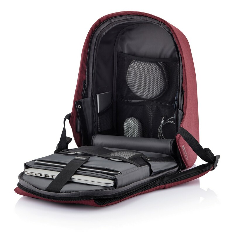 Plecak chroniący przed kieszonkowcami Bobby Hero Regular, wodoodporny i odporny na przecięcia materiał, wykonany z materiału RPET, ukryte zamki i kieszenie, wewnątrz miękkie przegrody na laptopa 15,6" i tablet do 12,9", zintegrowany port USB do ładowania telefonów (power-bank nie jest dołączony), odblaskowe paski zwiększające widoczność, pasek do zamocowania na walizce, wzór zastrzeżony®, ślad węglowy produktu: 6,68 kg CO2
