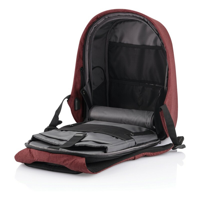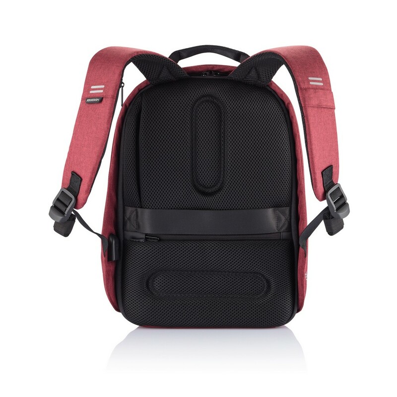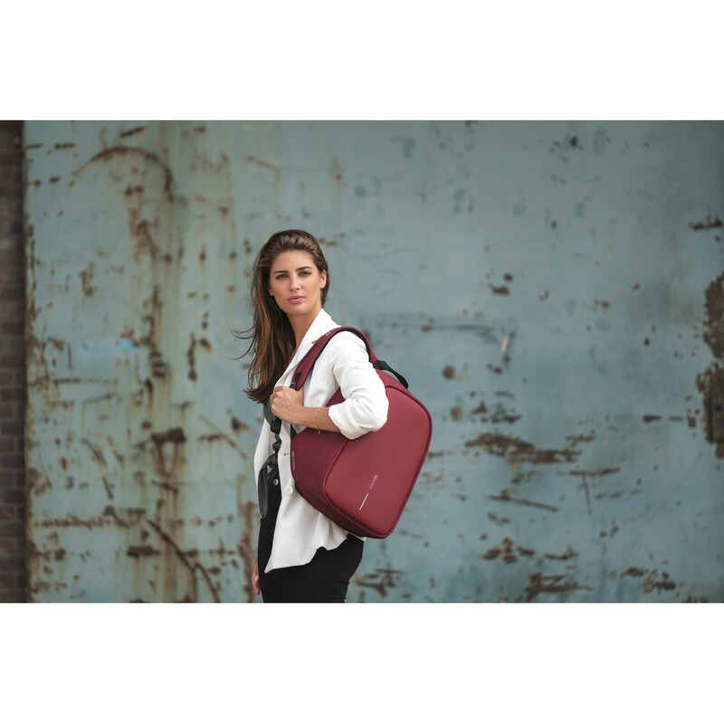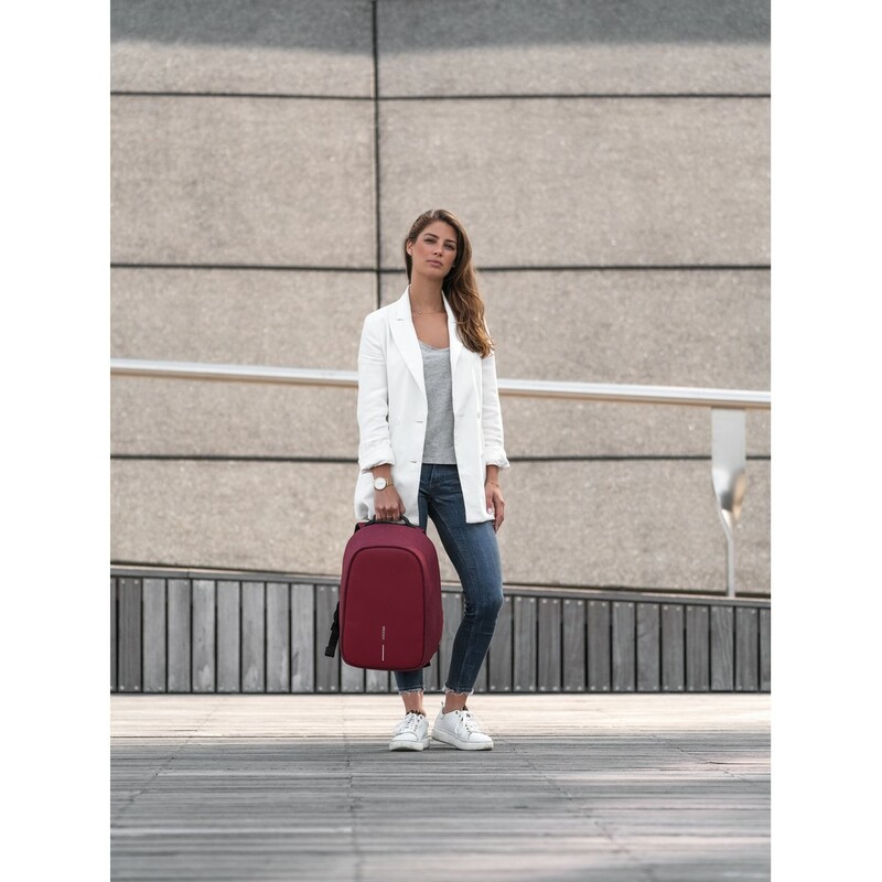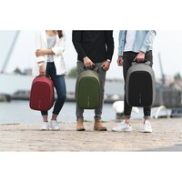 Plecak chroniący przed kieszonkowcami Bobby Hero Small, wodoodporny i odporny na przecięcia materiał, wykonany z przyjaznego środowisku materiału RPET, ukryte zamki i kieszenie, wewnątrz miękkie przegrody na laptopa do 13,3" i tablet do 12,9", zintegrowany port USB do ładowania telefonów (power-bank nie jest dołączony), odblaskowe paski zwiększające widoczność, pasek do zamocowania na walizce, wzór zastrzeżony®, ślad węglowy produktu: 6,28 kg CO2