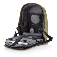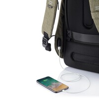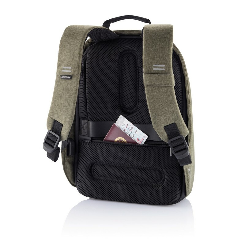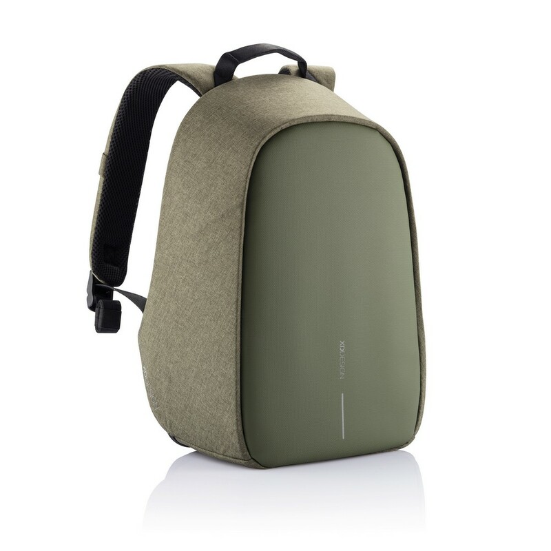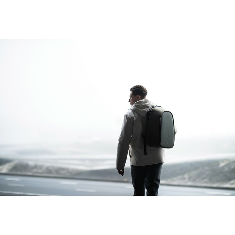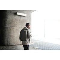 Plecak chroniący przed kieszonkowcami Bobby Hero Small, wodoodporny i odporny na przecięcia materiał, wykonany z przyjaznego środowisku materiału RPET, ukryte zamki i kieszenie, wewnątrz miękkie przegrody na laptopa do 13,3" i tablet do 12,9", zintegrowany port USB do ładowania telefonów (power-bank nie jest dołączony), odblaskowe paski zwiększające widoczność, pasek do zamocowania na walizce, wzór zastrzeżony®, ślad węglowy produktu: 6,28 kg CO2