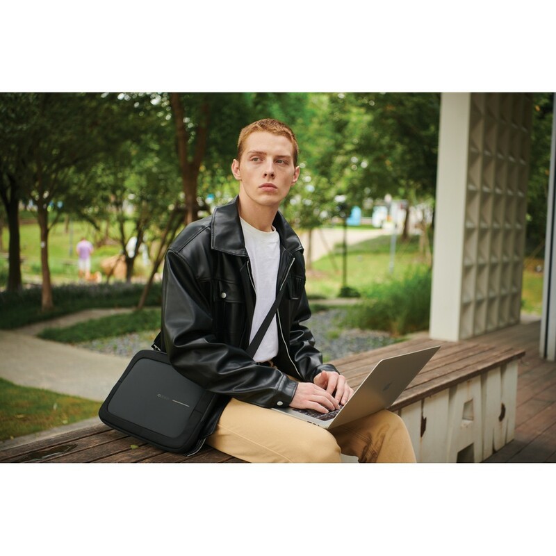 Torba na laptopa 14”, wykonana z RPET, przestronna przegroda główna, zewnętrzna kieszeń na akcesoria, odpinany pasek na ramię, dzięki zastosowaniu technologii AWARE™ wykorzystane materiały są identyfikowalne z pochodzenia, ślad węglowy produktu: 2,6 kg CO2