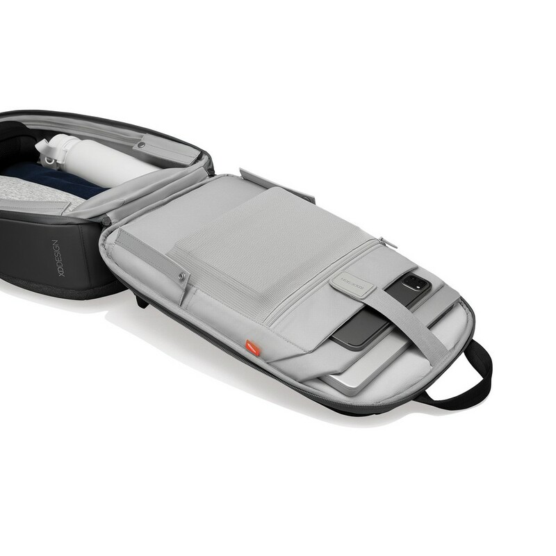 Plecak chroniący przed kieszonkowcami Bobby Edge, wodoodporny materiał, wykonany z RPET, ukryte zamki i kieszenie, wewnątrz przegroda na laptop i tablet, kieszenie z ochroną RFID, odblaskowe paski zwiększające widoczność, pasek do zamocowania na walizce, wzór zastrzeżony®, całkowita zawartość materiałów z recyklingu obliczona na podstawie wagi całkowitej produktu: 14%, ślad węglowy produktu: 6,15 kg CO2