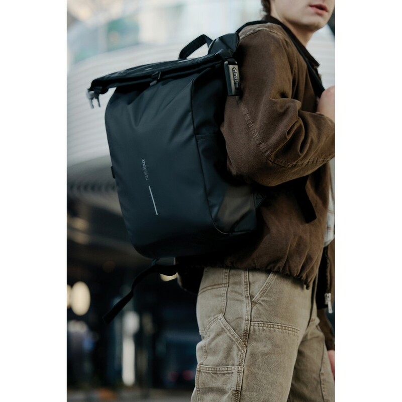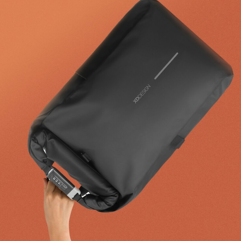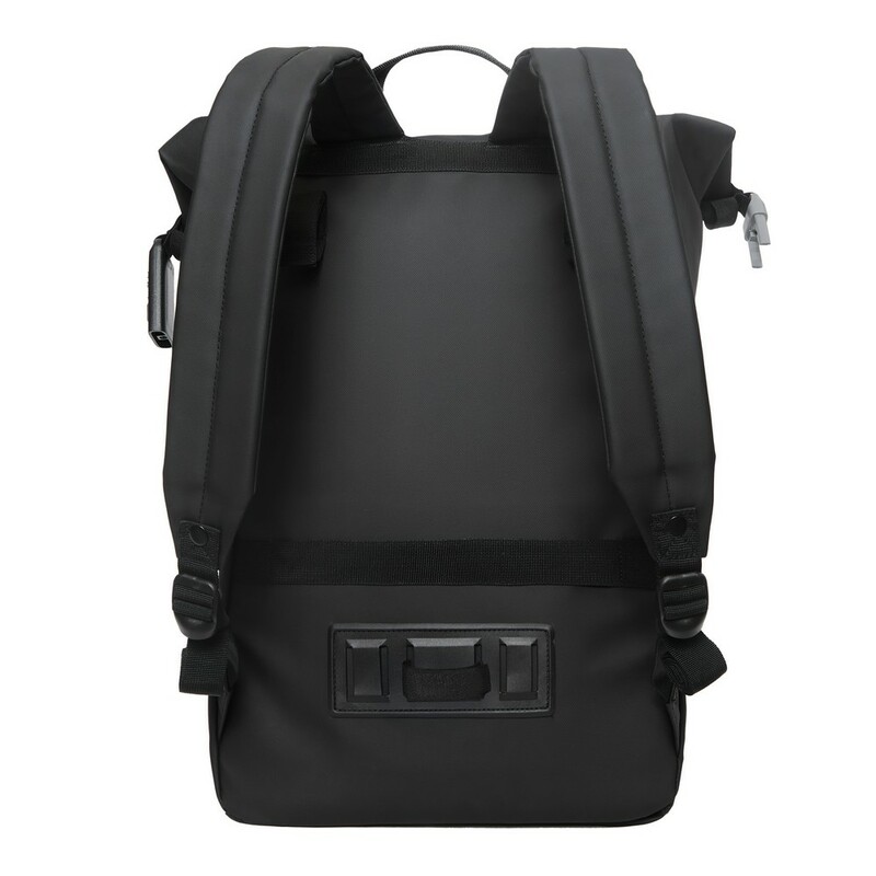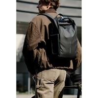 Plecak rowerowy na laptopa 16”, zwijana konstrukcja z zamkiem szyfrowym, przestronna przegroda główna z kieszeniami siateczkowymi wewnątrz, wykonany z materiałów z recyklingu, całkowita zawartość materiałów z recyklingu obliczona na podstawie wagi całkowitej przedmiotu: 32%