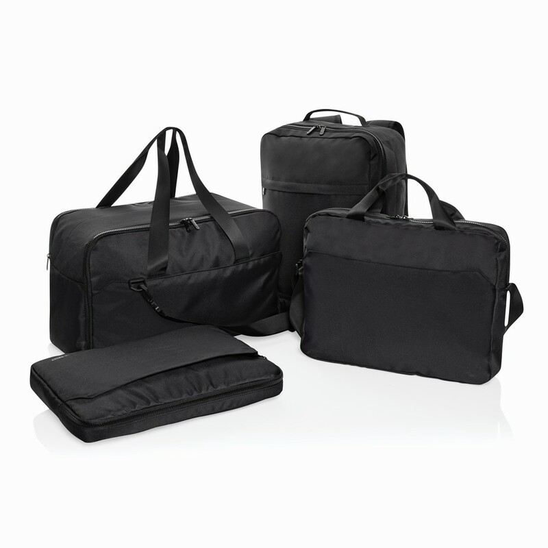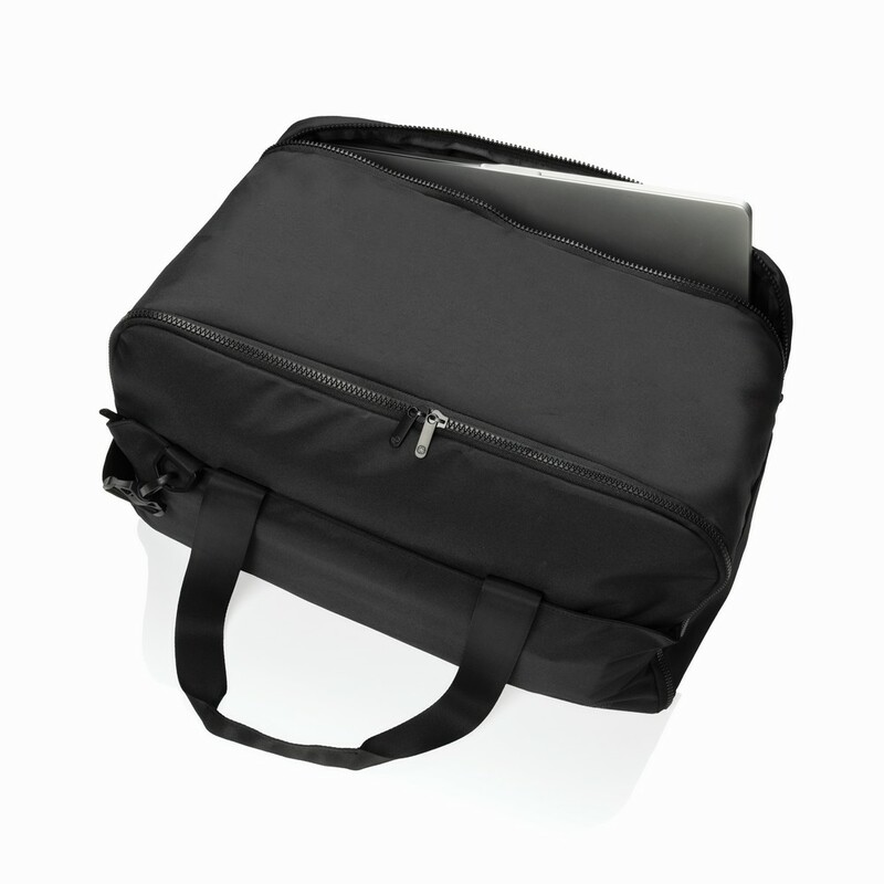Torba na laptopa 15,6" Swiss Peak, wykonana z RPET AWARE™ 300D/150D, przegroda na laptopa do 15,6", przestronna komora główna z dodatkowymi kieszeniami wewnętrznymi, kieszeń na zamek, solidne zamki błyskawiczne, idealna na krótkie podróże służbowe