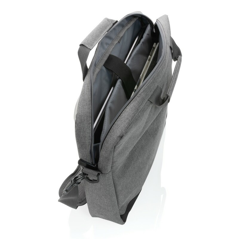 Torba na laptopa 15,6", wykonana z poliestru 600D, główna przegroda podzielona na dwie strony, przednia kieszeń na zamek błyskawiczny, nie zawiera PVC, ślad węglowy produktu: 4,05 kg CO2