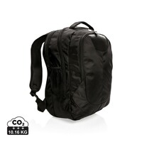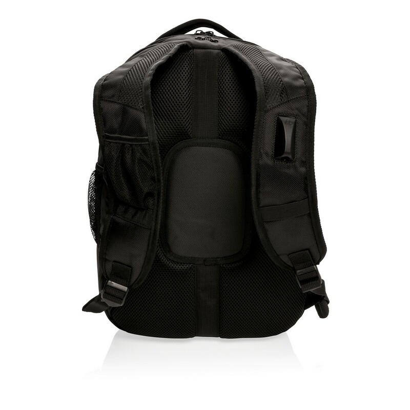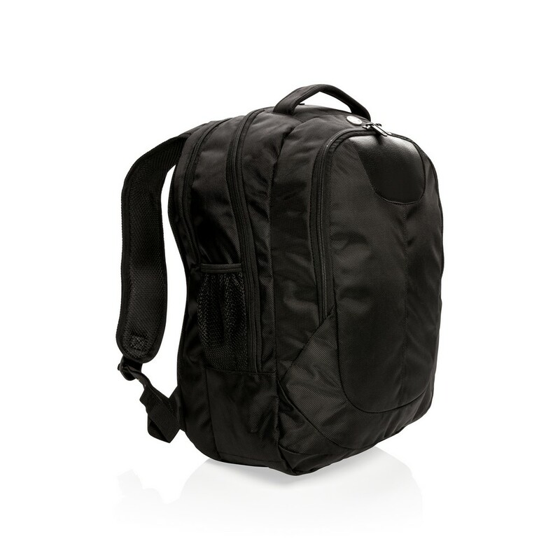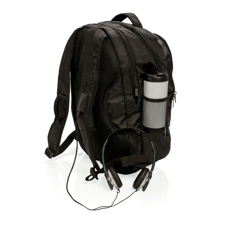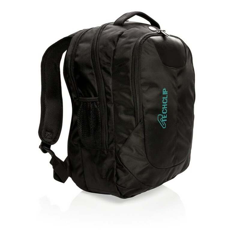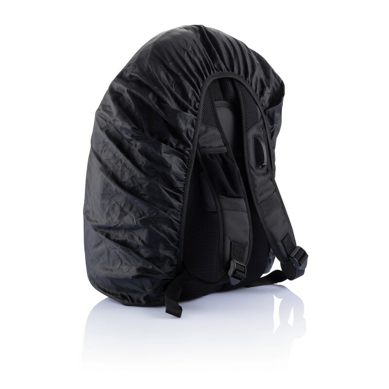 Plecak na laptopa 15,6", wykonany z poliestru 1680D, posiada kieszenie na rzeczy osobiste, miękką przegrodę na laptopa, miejsce na tablet i przybory do pisania, kieszenie siateczkowe, miejsce do podłączenia słuchawek oraz uchwyt na okulary przeciwsłoneczne w pasku na ramię, pokrowiec przeciwdeszczowy w komplecie, produkt zastrzeżony®, ślad węglowy produktu: 10,16 kg CO2