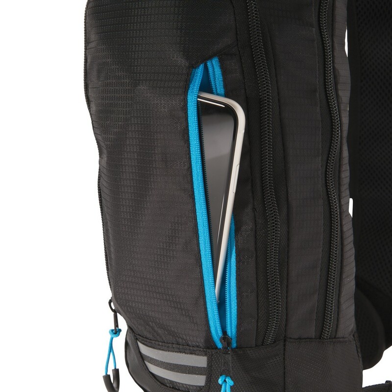 Mały plecak turystyczny, pojemność 7l, wykonany z wytrzymałej tkaniny poliestrowej, doskonale nadaje się do aktywności na świeżym powietrzu, wewnątrz kieszeń na butelkę, plecak posiada otwór do wyprowadzenia rurki nawadniającej, przednia kieszeń na zamek błyskawiczny, zintegrowana osłona przeciwdeszczowa, miękkie, regulowane paski na ramię, nie zawiera PVC, ślad węglowy produktu: 2,11 kg CO2