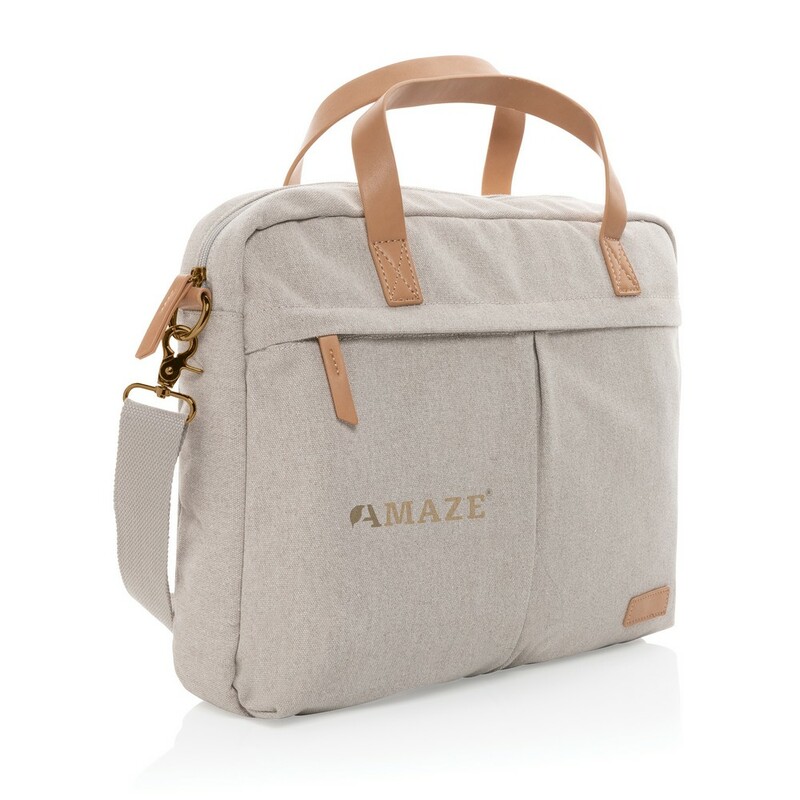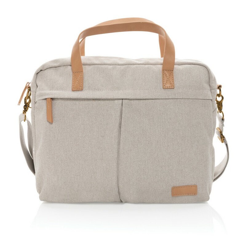 Torba na laptopa 15,6", przestronne kieszeń z przodu i z tyłu, wykonana z mieszanki 60% bawełny z recyklingu i 40% poliestru z recyklingu, dzięki zastosowaniu technologii śledzącej AWARE™ wykorzystane włókna są identyfikowalne z pochodzenia, 2% wpływów z każdego sprzedanego produktu z kolekcji Impact jest przekazywane na rzecz Water.org
