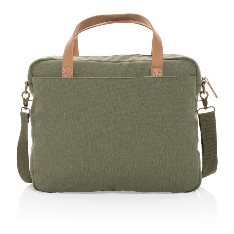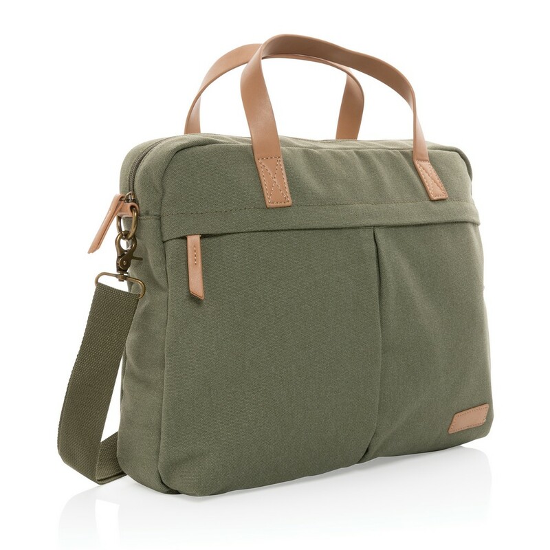 Torba na laptopa 15,6", przestronne kieszeń z przodu i z tyłu, wykonana z mieszanki 60% bawełny z recyklingu i 40% poliestru z recyklingu, dzięki zastosowaniu technologii śledzącej AWARE™ wykorzystane włókna są identyfikowalne z pochodzenia, 2% wpływów z każdego sprzedanego produktu z kolekcji Impact jest przekazywane na rzecz Water.org