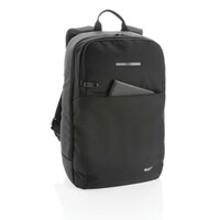 Plecak na laptopa 15,6" z kieszenią sterylizującą UV-C, zintegrowana kieszeń sterylizująca zabija 99,9% bakterii na umieszczonych wewnątrz przedmiotach takich jak zegarki, telefony, słuchawki, biżuteria, itp., 3 minutowy tryb sterylizacji, dzięki specjalnej konstrukcji po otwarciu urządzenia w trakcie sterylizacji światło wyłączy się automatycznie bez narażania użytkownika, podwójne zamknięcie na zamek błyskawiczny i magnes, wnętrze z poliestru 210D, na zewnątrz poliestry 600D i 900D, kieszenie wewnątrz i na zewnątrz, w komplecie kabel micro USB do ładowania sterylizatora, zgodny z normą EN62471, nie zawiera PVC, ślad węglowy produktu: 6,07 kg CO2