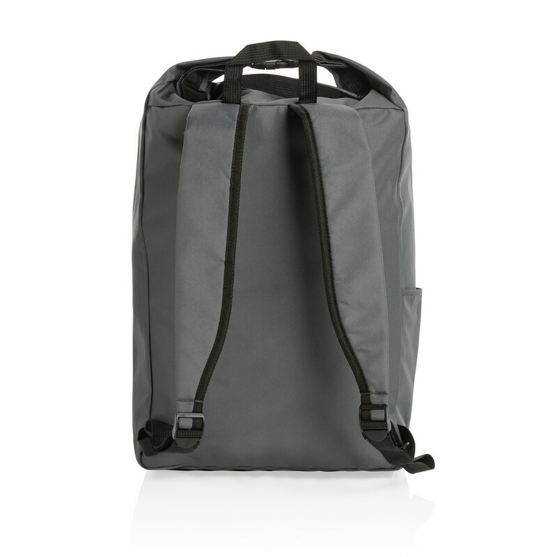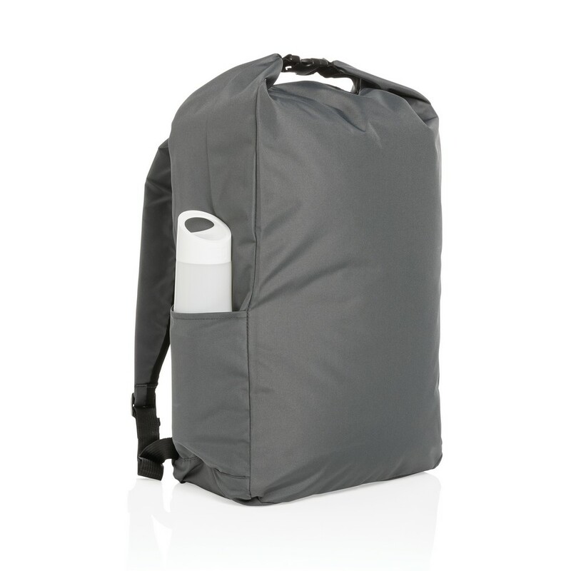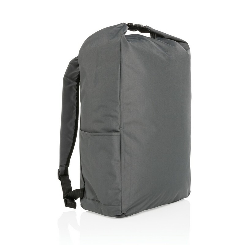 Plecak, zwijane zamknięcie na zatrzask, przestronna przegroda główna, wykonany z RPET, do którego produkcji zostało ponownie wykorzystanych 11,6 butelek PET, dzięki zastosowaniu technologii śledzącej AWARE™ wykorzystane włókna są identyfikowalne z pochodzenia oraz wyprodukowane zostały zgodnie z ideą zrównoważonego rozwoju, 2% wpływów z każdego sprzedanego produktu z kolekcji Impact jest przekazywane na rzecz Water.org