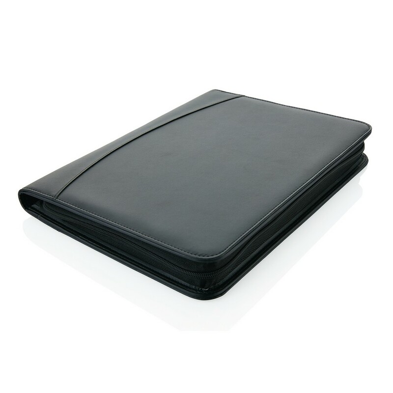Teczka konferencyjna A4 na zamek błyskawiczny, notatnik A4 (20 jednostronnych kartek w linie), wykonana z PU, stojak na telefon/tablet wewnątrz, kieszeń na telefon z przezroczystym okienkiem umożliwiającym obsługę urządzenia (pasuje do telefonów iPhone 6 oraz Samsung S6 itp.), kieszeń na dokumenty lub tablet, uchwyty na gadżety, 5 miejsc na karty kredytowe lub wizytówki, kompatybilna ze wszystkimi tabletami iPad, Android oraz Microsoft Windows, ślad węglowy produktu: 3,64 kg CO2