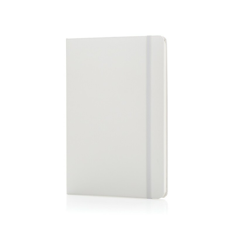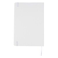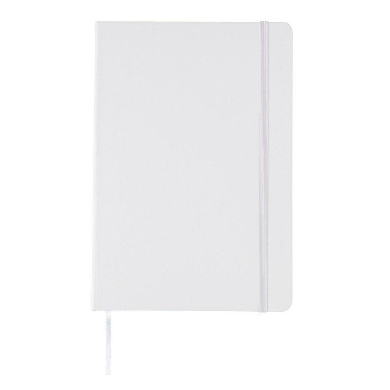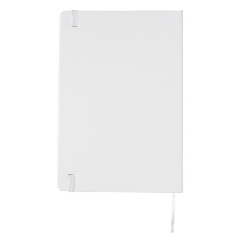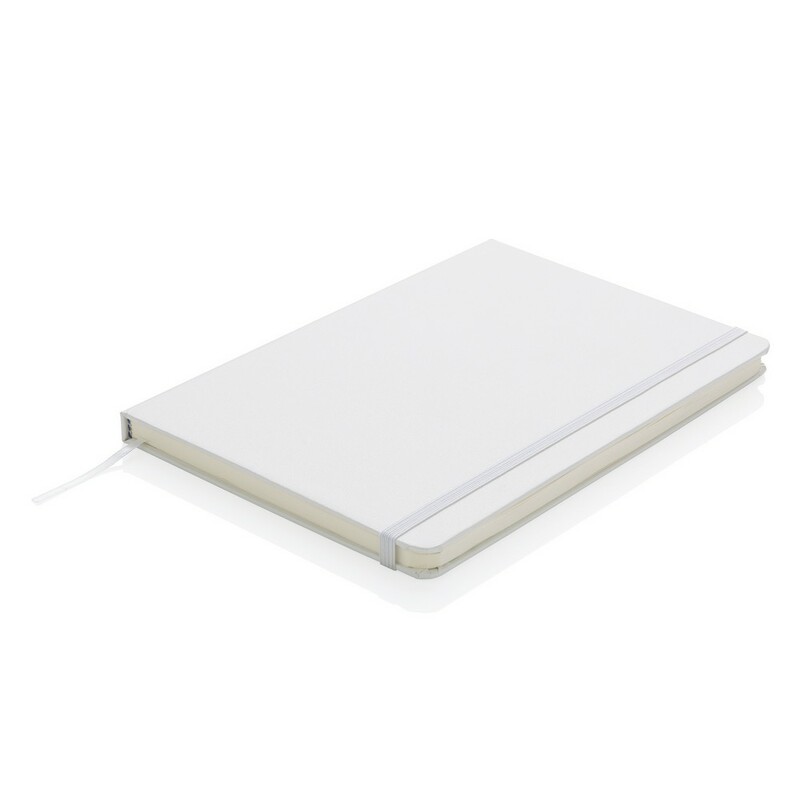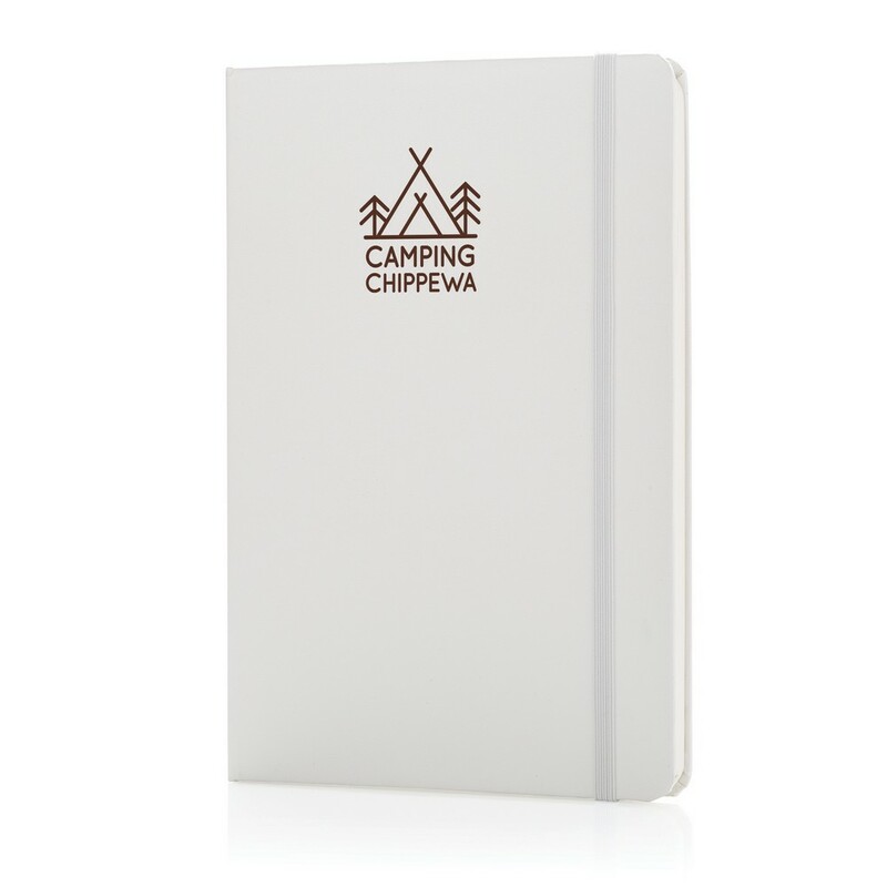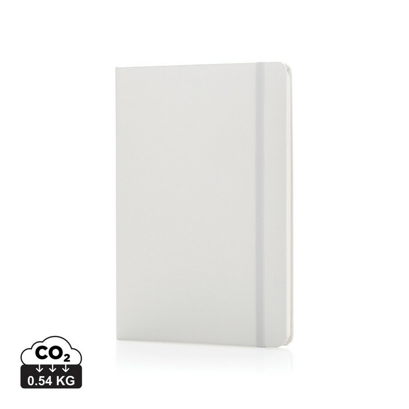 Notatnik A5 (72 kremowe kartki 70 g/m2 w linie), twarda okładka, tasiemka zakładkowa i elastyczna opaska do zamykania, ślad węglowy produktu: 0,54 kg CO2
