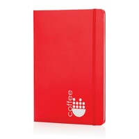 Notatnik A5 (72 kremowe kartki 70 g/m2 w linie), twarda okładka, tasiemka zakładkowa i elastyczna opaska do zamykania, ślad węglowy produktu: 0,54 kg CO2