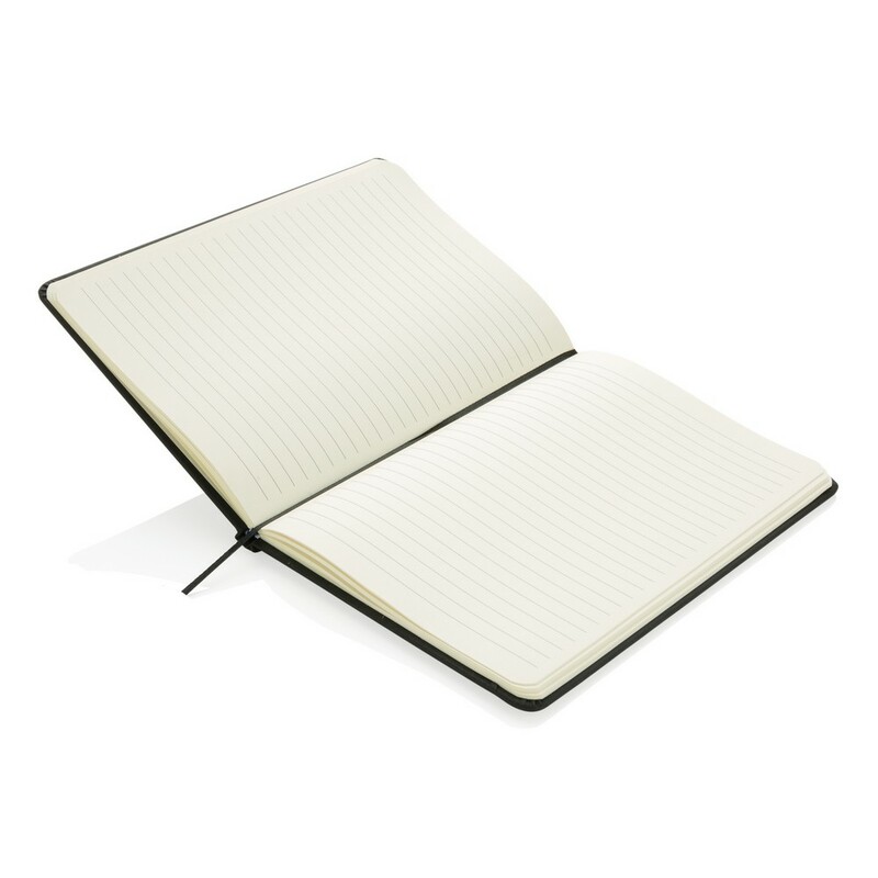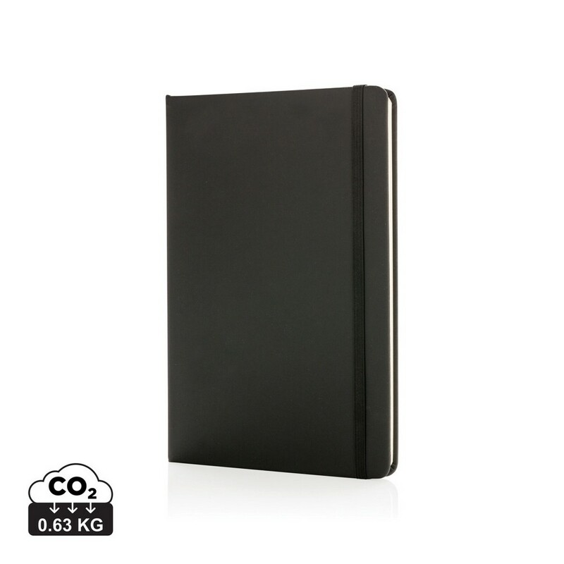 Notatnik A5 (72 kremowe kartki 70 g/m2 w linie), twarda okładka wykonana z PU, tasiemka zakładkowa oraz elastyczna opaska do zamykania, ślad węglowy produktu: 0,63 kg CO2