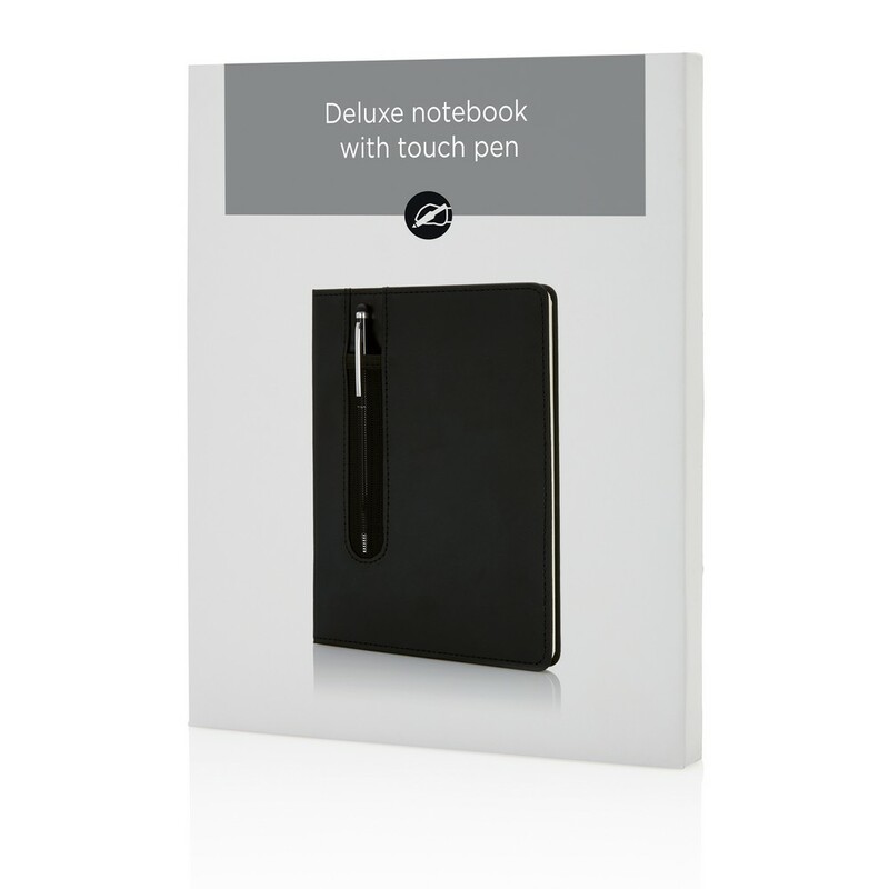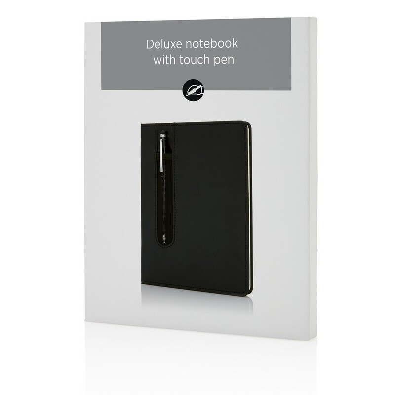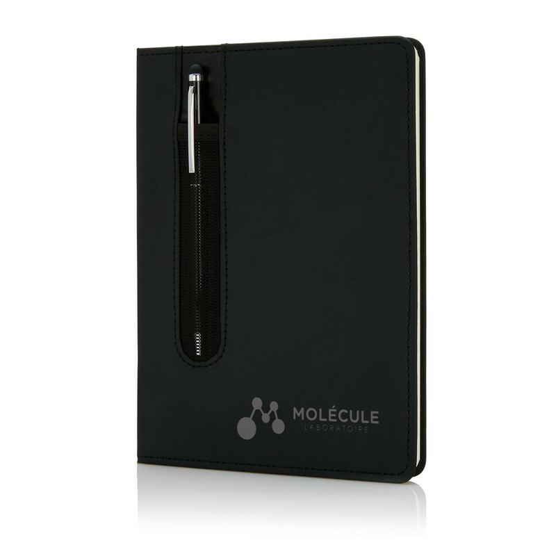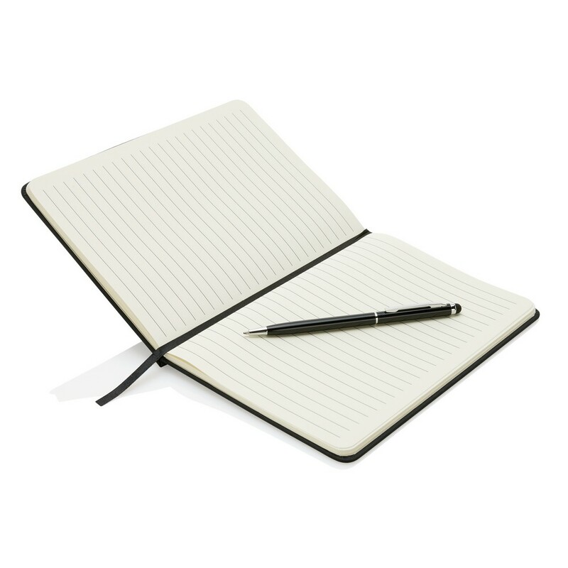 Notatnik A5 (80 kartek 80 g/m2 w linie), w komplecie metalowy długopis, touch pen, miejsce na przybory do pisania, okładka wykonana z PU, w ozdobnym pudełku, ślad węglowy produktu: 0,85 kg CO2