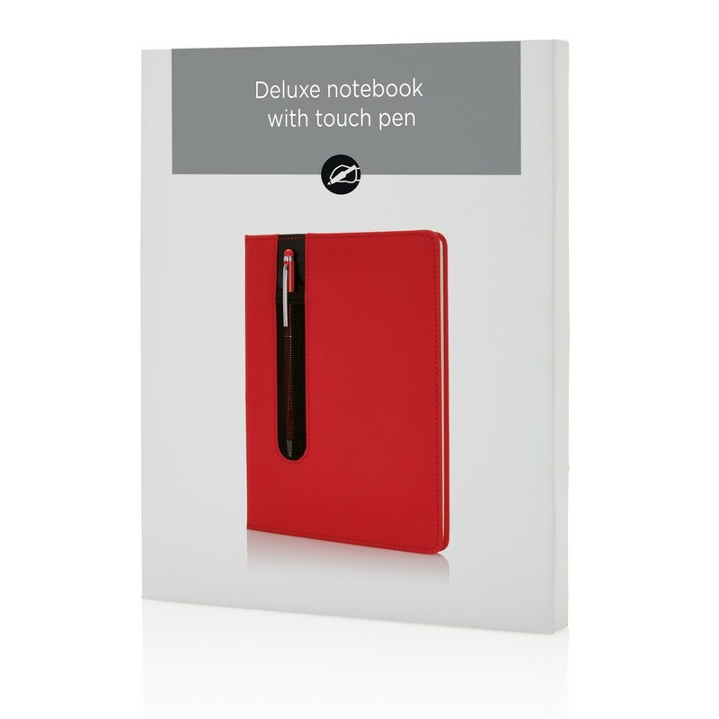 Notatnik A5 (80 kartek 80 g/m2 w linie), w komplecie metalowy długopis, touch pen, miejsce na przybory do pisania, okładka wykonana z PU, w ozdobnym pudełku, ślad węglowy produktu: 0,85 kg CO2