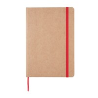 Notatnik A5 (72 kremowe kartki 70 g/m2 w linie), wykonany z papieru makulaturowego, tasiemka zakładkowa i elastyczna opaska do zamykania, ślad węglowy produktu: 0,52 kg CO2