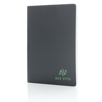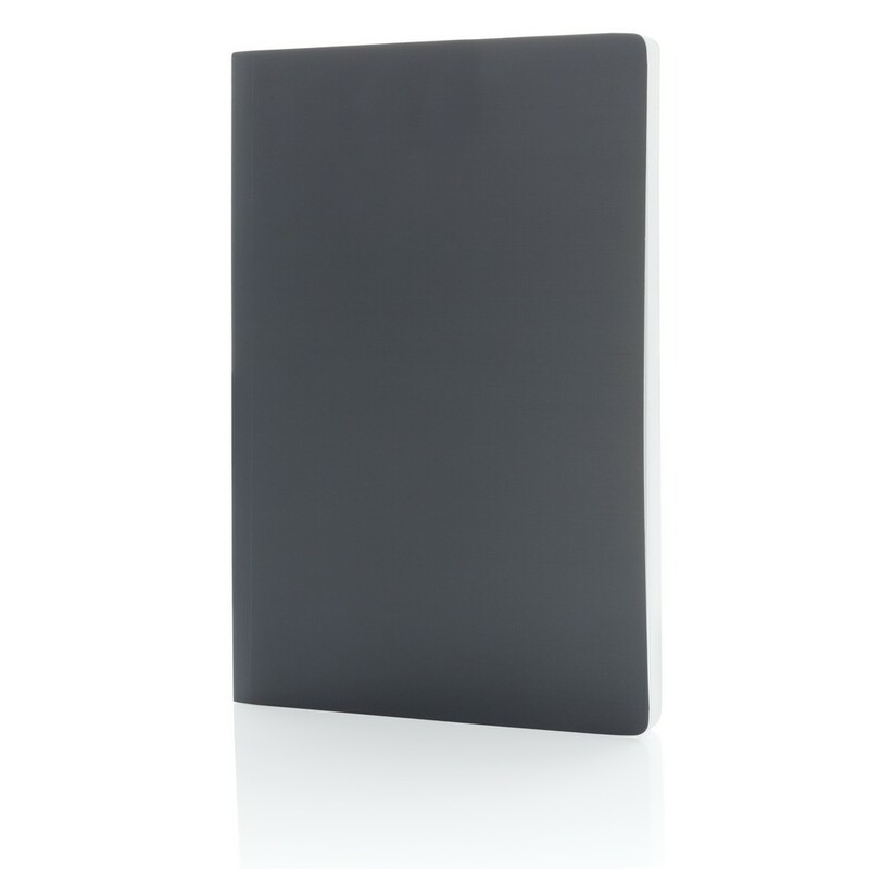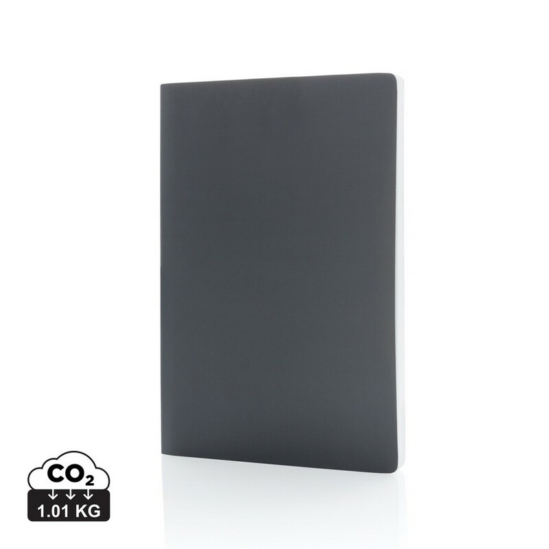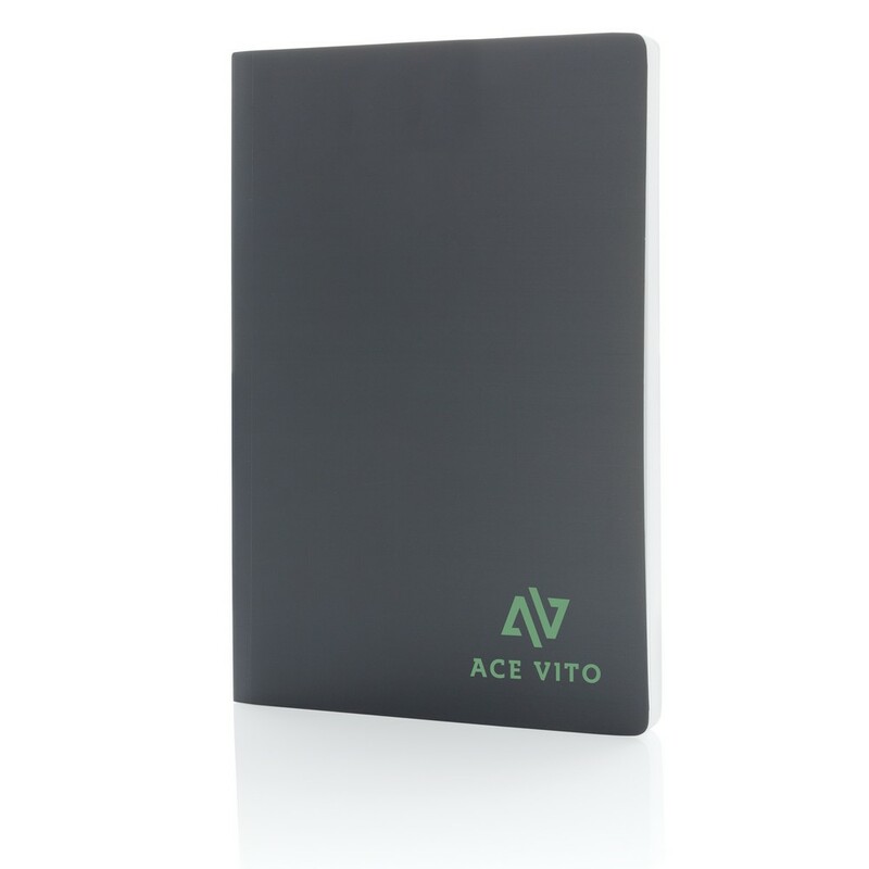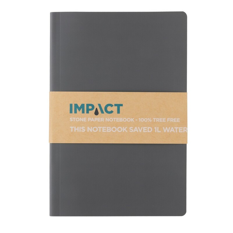 Notatnik A5 (60 białych kartek 58 g/m2 w linie), miękka okładka, notatnik wykonany z papieru kamiennego, który składa się w 80% z proszku mineralnego i 20% nietoksycznego HDPE (czysty plastik), 2% wpływów z każdego sprzedanego produktu z kolekcji Impact jest przekazywane na rzecz Water.org