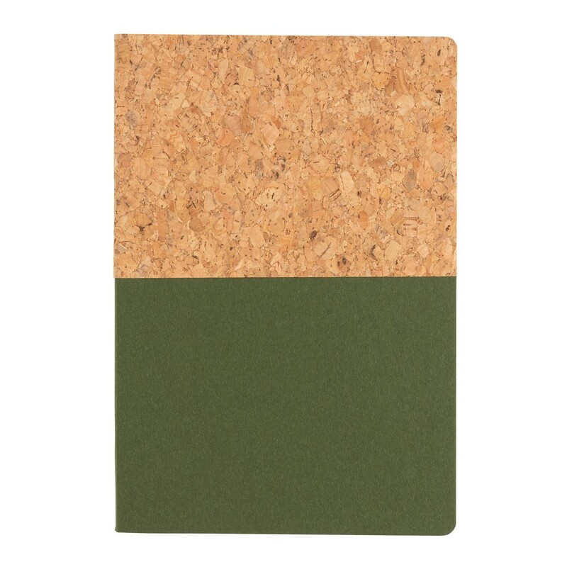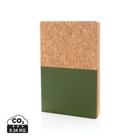 Notatnik A5 (80 kartek z papieru z recyklingu o gramaturze 80 g/m2 w linie), okładka wykonana z korka i papieru kraftowego, ślad węglowy produktu: 0,34 kg CO2