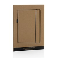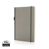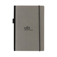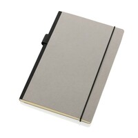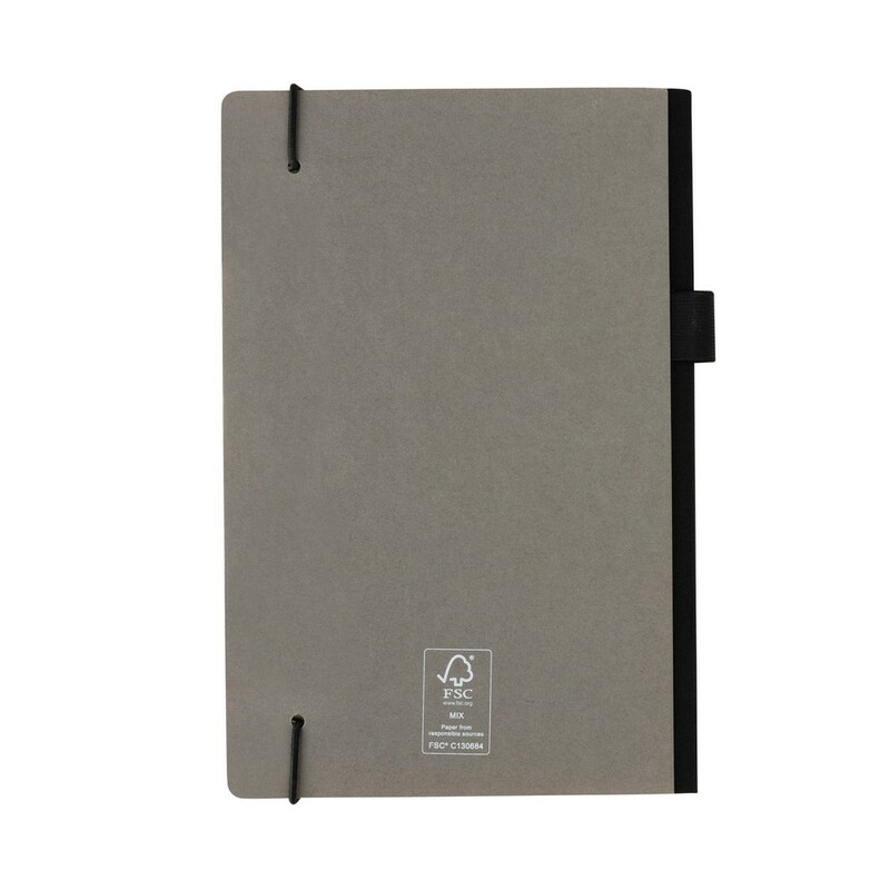 Notatnik A5, (80 kremowych kartek w linie), twarda okładka, okładka oraz strony wewnętrzne posiadają certyfikat FSC® (Forest Stewardship Council), tasiemka zakładkowa, elastyczna pętla na przybory do pisania, z tyłu kieszonka na luźne notatki, ślad węglowy produktu: 0,55 kg CO2