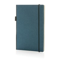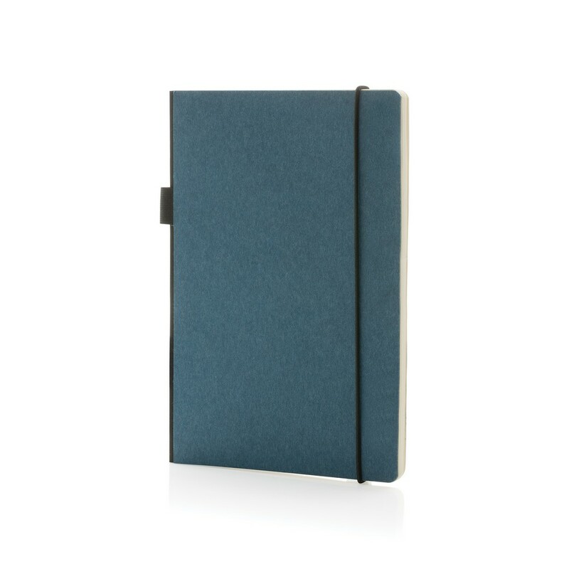 Notatnik A5, (80 kremowych kartek w linie), twarda okładka, okładka oraz strony wewnętrzne posiadają certyfikat FSC® (Forest Stewardship Council), tasiemka zakładkowa, elastyczna pętla na przybory do pisania, z tyłu kieszonka na luźne notatki, ślad węglowy produktu: 0,55 kg CO2