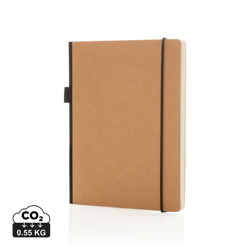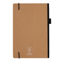Notatnik A5, (80 kremowych kartek w linie), twarda okładka, okładka oraz strony wewnętrzne posiadają certyfikat FSC® (Forest Stewardship Council), tasiemka zakładkowa, elastyczna pętla na przybory do pisania, z tyłu kieszonka na luźne notatki, ślad węglowy produktu: 0,55 kg CO2