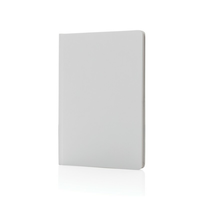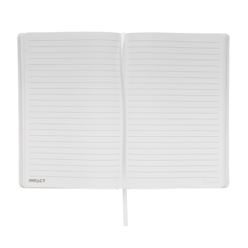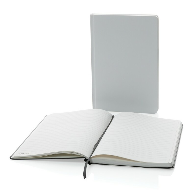 Notatnik A5 (64 białe kartki 58 g/m2 w linie), twarda okładka, notatnik wykonany z papieru kamiennego, który składa się w 80% z proszku mineralnego i 20% nietoksycznego HDPE (czysty plastik), 2% wpływów z każdego sprzedanego produktu z kolekcji Impact jest przekazywane na rzecz Water.org