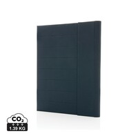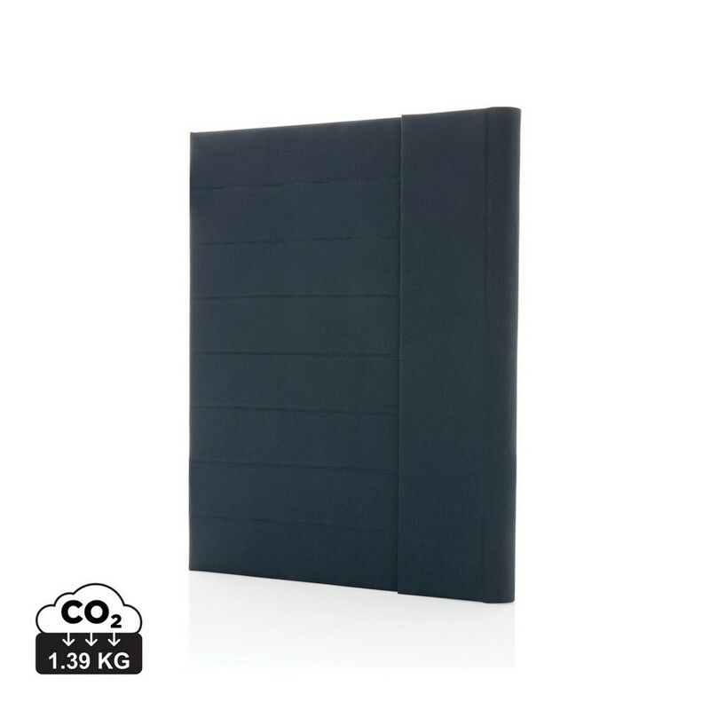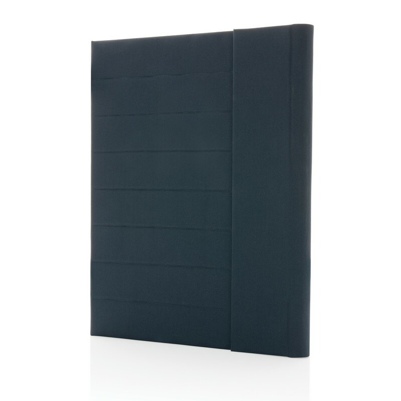 Teczka konferencyjna A4 z notatnikiem (20 kremowych kartek 70 g/m2 w linie z papieru z recyklingu z certyfikatem FSC® (Forest Stewardship Council)), magnetyczne zamknięcie, wewnątrz duża kieszeń, 2 kieszenie na akcesoria i pętla na akcesoria do pisania, poliester z recyklingu wewnątrz i na zewnątrz, wykonana z 3,2 poddanych recyklingowi butelek PET (500 ml), dzięki zastosowaniu technologii AWARE™ wykorzystane materiały są identyfikowalne z pochodzenia, 2% wpływów z każdego sprzedanego produktu z kolekcji Impact jest przekazywane na rzecz Water.org, nie zawiera PVC