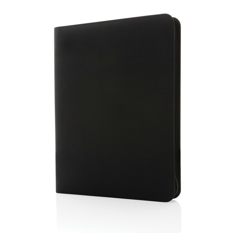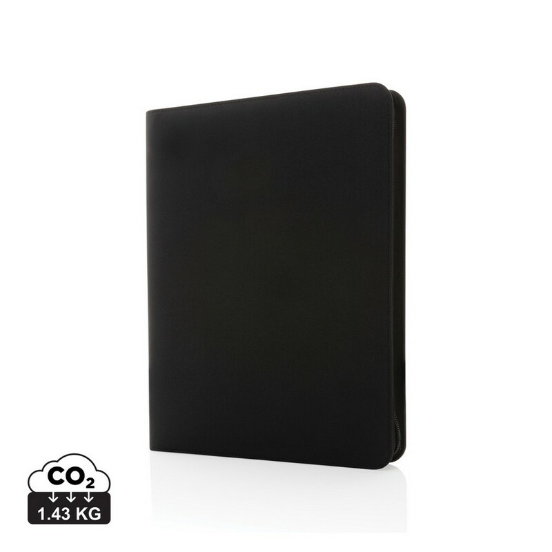 Teczka konferencyjna A4 z notatnikiem (20 kartek z 64 g/m2 papieru z recyklingu w linie), zamykana na zamek błyskawiczny, wewnątrz kieszeń i stojak na telefon, 2 kieszenie na wizytówki i pętla na akcesoria do pisania, wykonana z 8 poddanych recyklingowi butelek PET (500 ml), dzięki zastosowaniu technologii AWARE™ wykorzystane materiały są identyfikowalne z pochodzenia, 2% wpływów z każdego sprzedanego produktu z kolekcji Impact jest przekazywane na rzecz Water.org, nie zawiera PVC