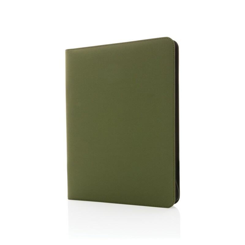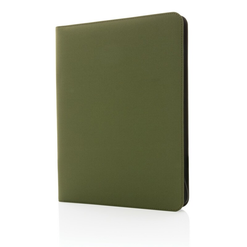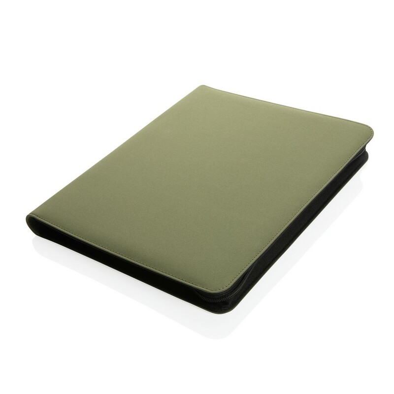 Teczka konferencyjna A4 z notatnikiem (20 kartek z 64 g/m2 papieru z recyklingu w linie), zamykana na zamek błyskawiczny, wewnątrz kieszeń i stojak na telefon, 2 kieszenie na wizytówki i pętla na akcesoria do pisania, wykonana z 8 poddanych recyklingowi butelek PET (500 ml), dzięki zastosowaniu technologii AWARE™ wykorzystane materiały są identyfikowalne z pochodzenia, 2% wpływów z każdego sprzedanego produktu z kolekcji Impact jest przekazywane na rzecz Water.org, nie zawiera PVC