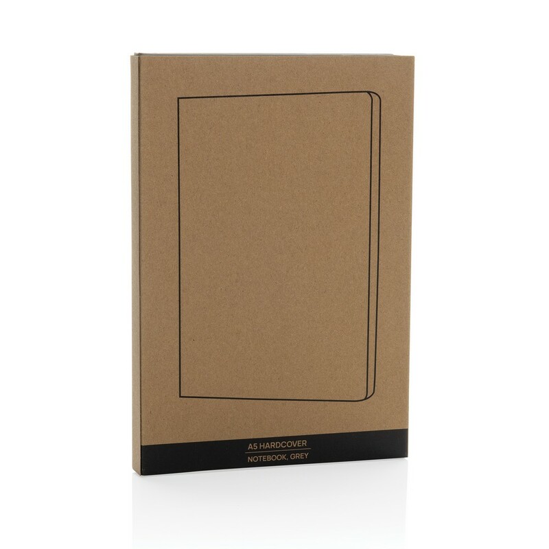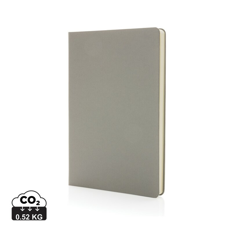 Notatnik A5, (80 kremowych kartek w linie), twarda okładka, okładka oraz strony wewnętrzne posiadają certyfikat FSC® (Forest Stewardship Council), tasiemka zakładkowa, ślad węglowy produktu: 0,52 kg CO2