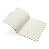 Notatnik A5, (46 kremowych kartek w linie), miękka okładka, okładka oraz strony wewnętrzne posiadają certyfikat FSC® (Forest Stewardship Council), ślad węglowy produktu: 0,25 kg CO2