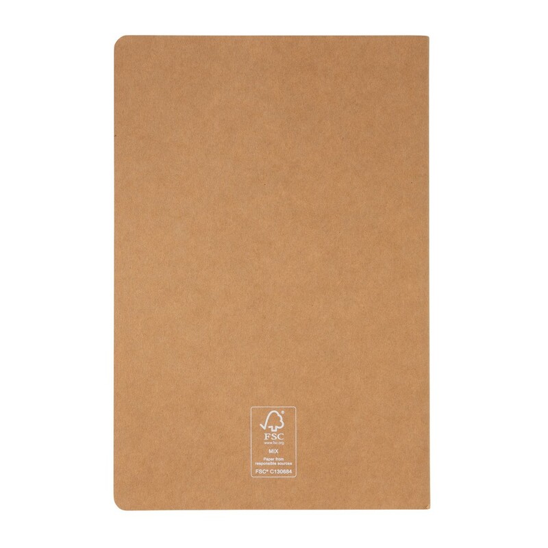 Notatnik A5, (46 kremowych kartek w linie), miękka okładka, okładka oraz strony wewnętrzne posiadają certyfikat FSC® (Forest Stewardship Council), ślad węglowy produktu: 0,25 kg CO2