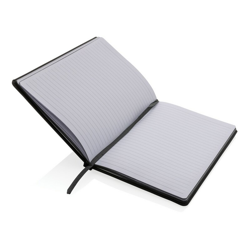 Notatnik (80 kartek 70g/m2 w linie), wykonany z materiałów pochodzących z recyklingu z certyfikatem GRS, całkowita zawartość materiałów z recyklingu obliczona na podstawie wagi całkowitej produktu: 68%, ślad węglowy produktu: 0,65 kg CO2