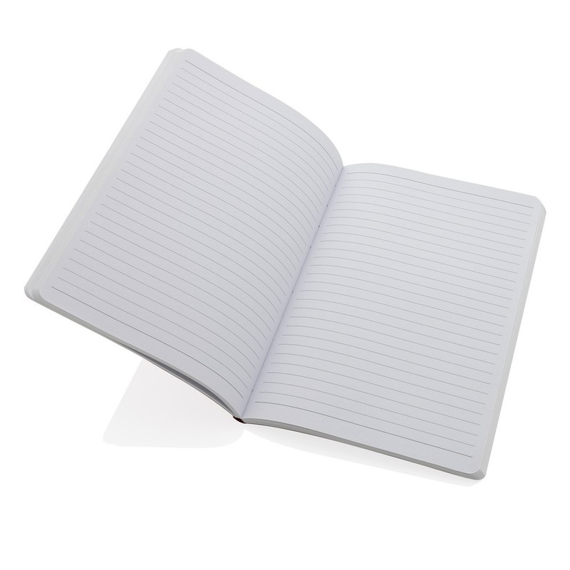 Notatnik (192 białe kartki 80g/m2 w linie), wykonany w 100% z papieru z recyklingu, ślad węglowy produktu: 0,47 kg CO2